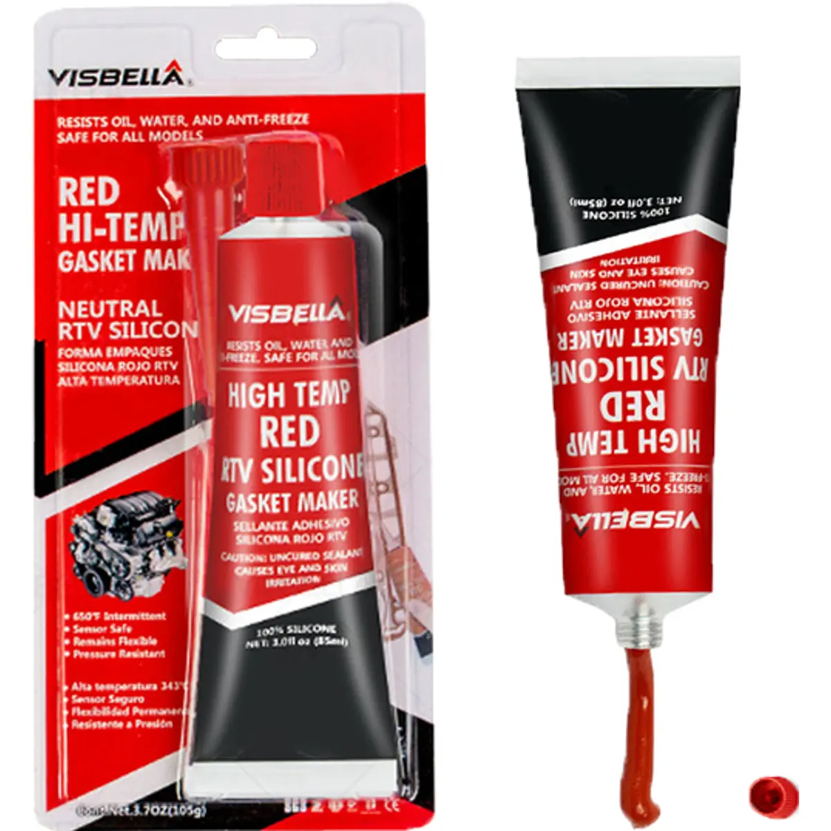 Silicone industrial de alta temperatura RTV (+343ºC) - vermelho - 85g - Visbella