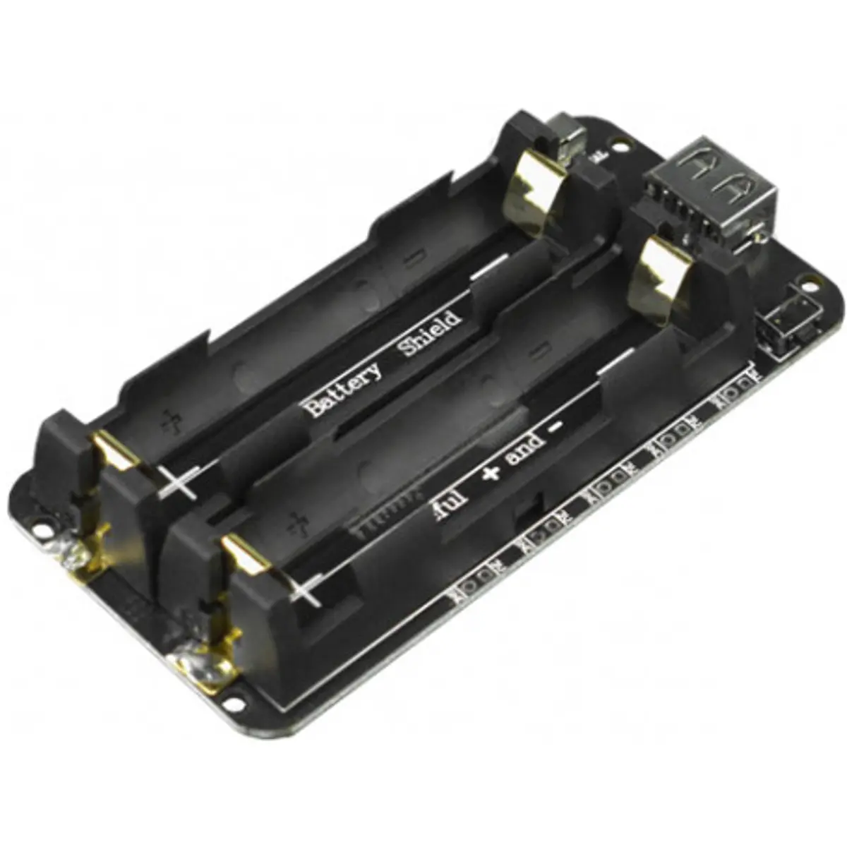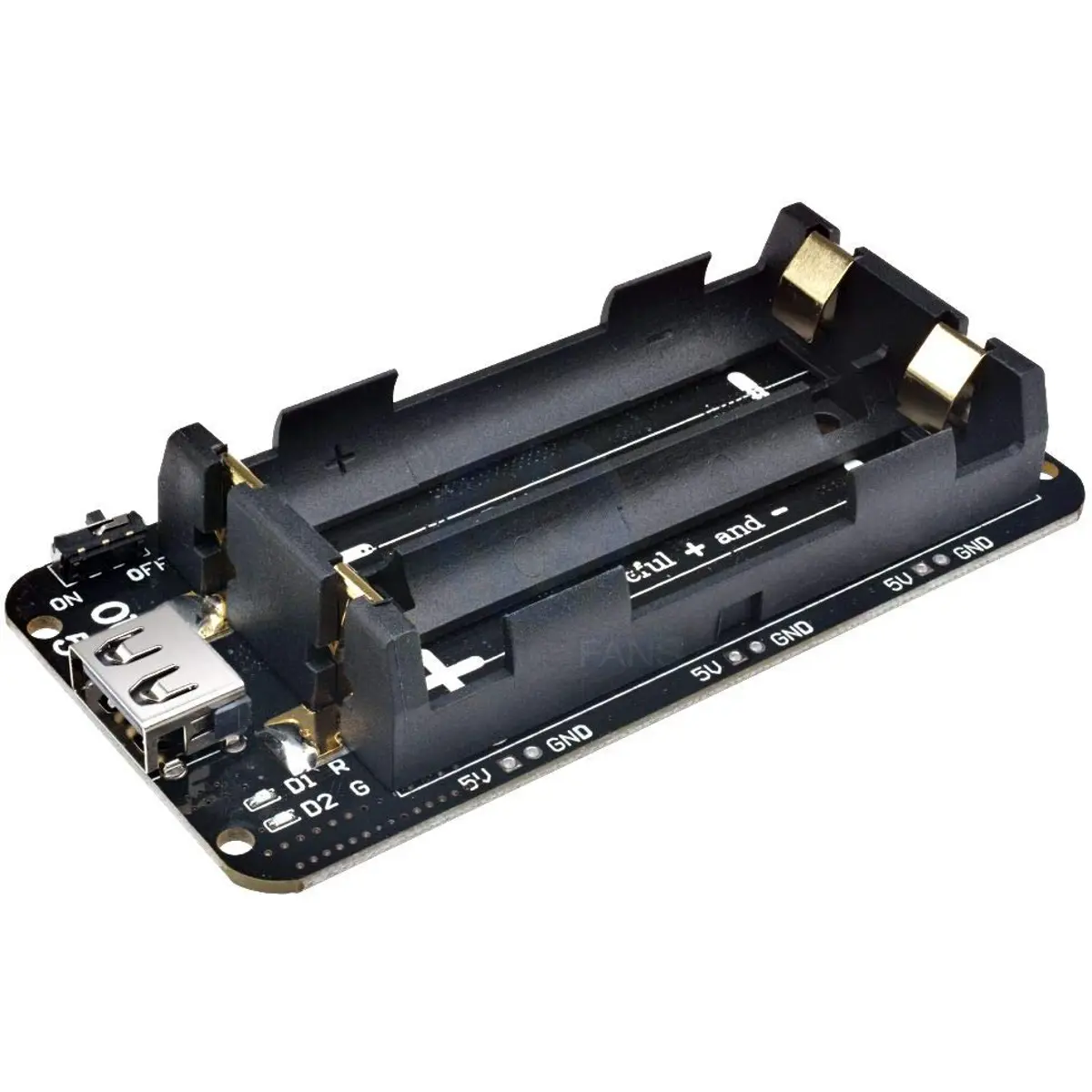 Este módulo de suporte de bateria 18650 com 2 slots é fácil de usar e oferece entradas de carregamento micro e tipo-C. Pode ser instalado com duas baterias 18650 e inclui cinco saídas de 5V/2A, cinco saídas de 3.3V/1A e uma saída USB de 5V. Possui proteção contra sobrecarga e descarga excessiva que aumenta consideravelmente a vida útil da bateria 18650.