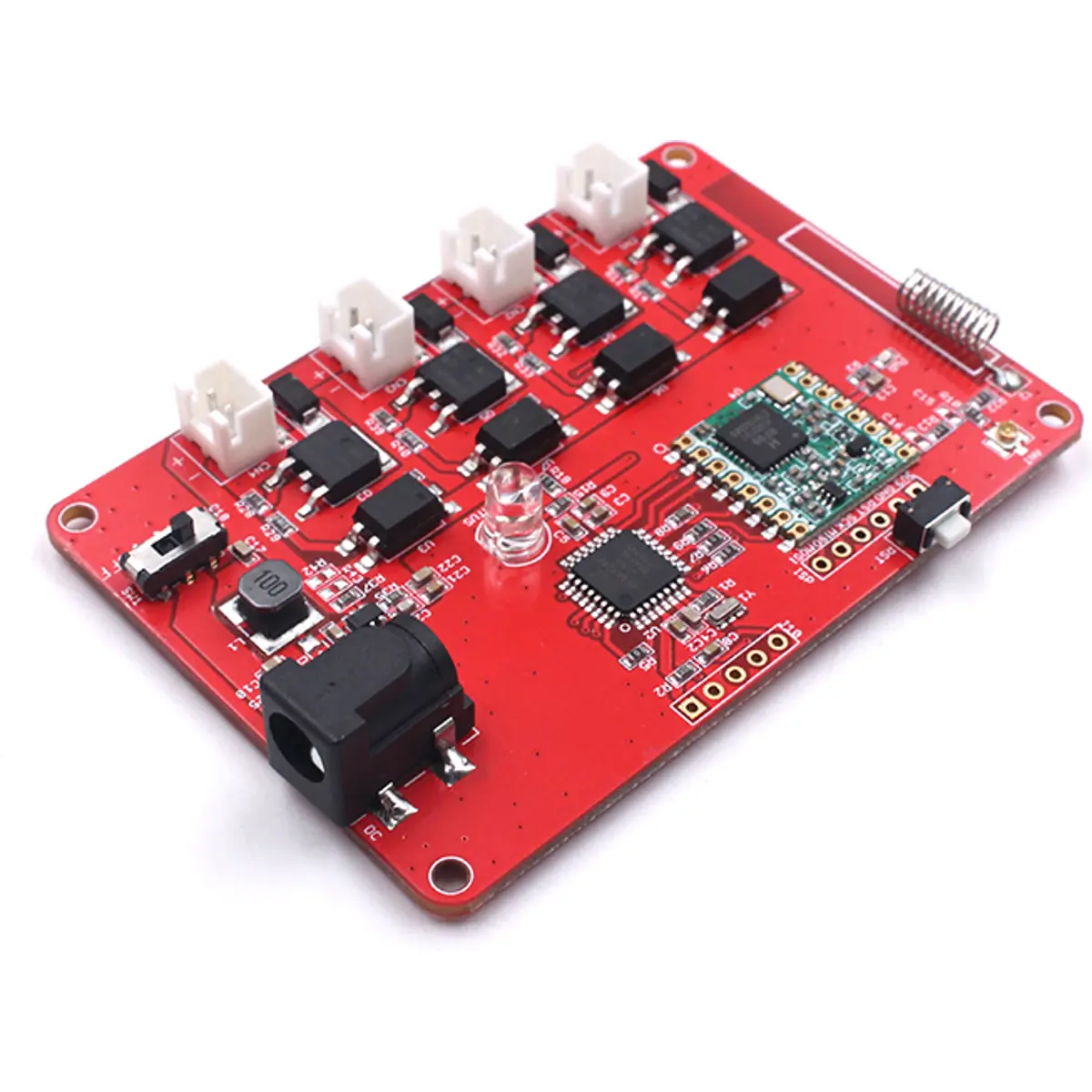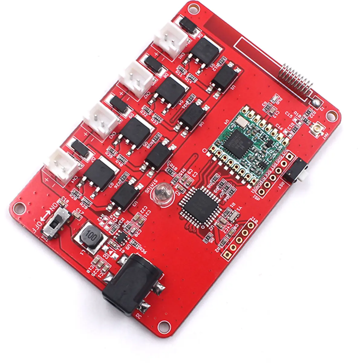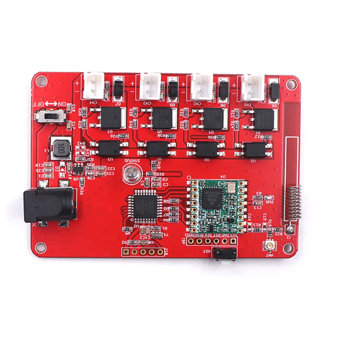 Este controlador é baseado no micro-controlador Atmega328P (o mesmo do Arduino UNO) e num módulo Lora RFM95W. O Atmega328P controla 4 canais MOSFET 24V/2A DC, com PWM e conector JST (padrão 2.54).