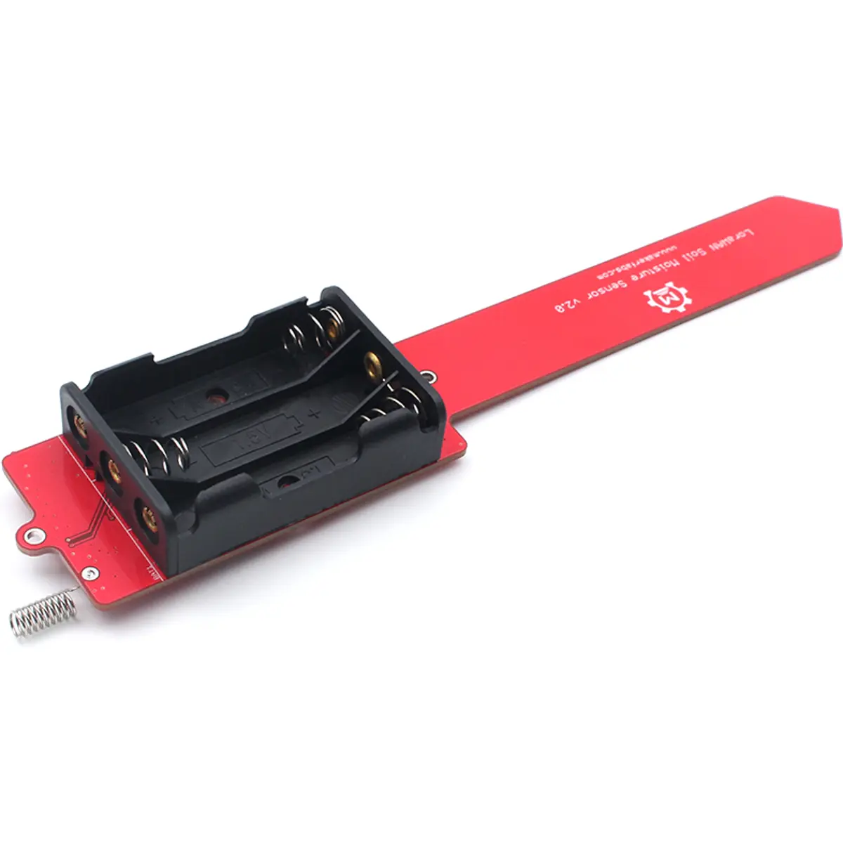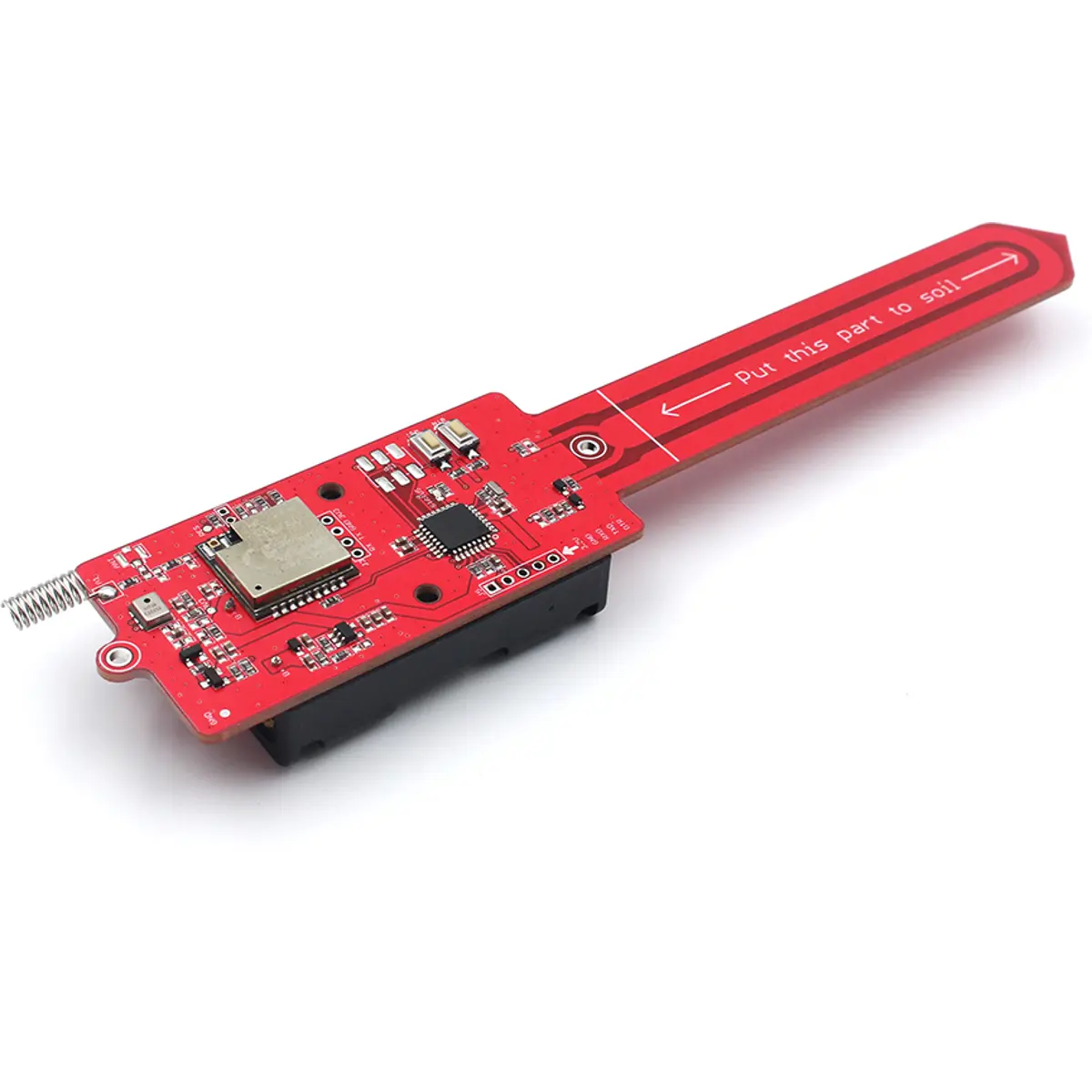 A monitorização da humidade do solo é feita através de um método capacitivo e a placa possui um revestimento à prova de água, o que evita os problema de corrosão e eletrólise do solo. Além disso, também possui um sensor de temperatura e humidade do ar (AHT10 onboard), para monitorizar as condições do ar, sendo adequado para utilização em estufas.