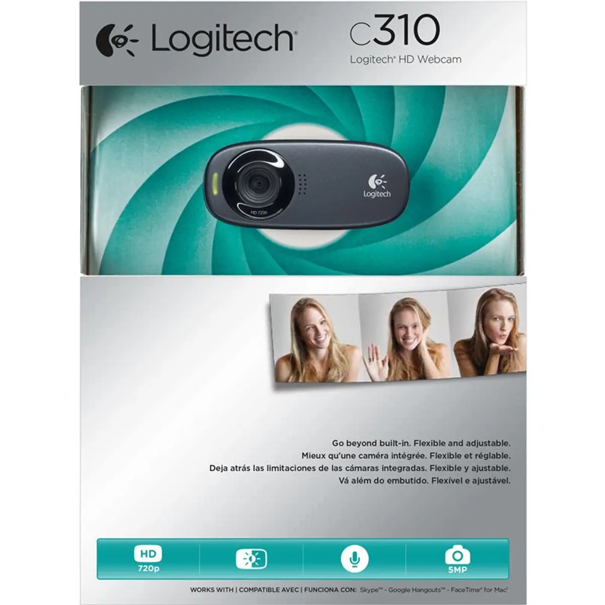 Usufrua de chamadas de vídeo nítidas e suaves (720p / 30fps) em formato widescreen com a Webcam Logitech C310 HD. A correção automática da luz mostra cores vibrantes e naturais.
