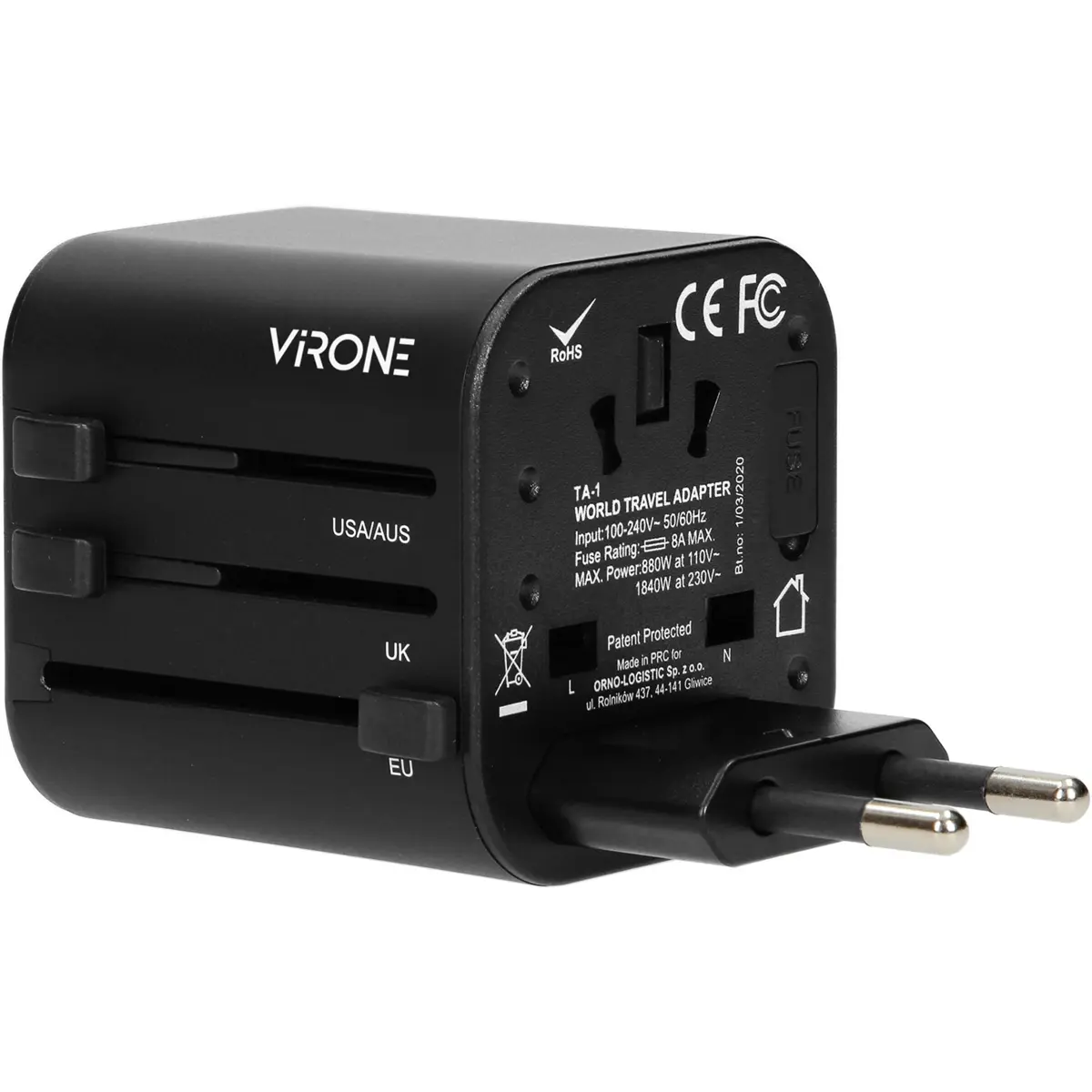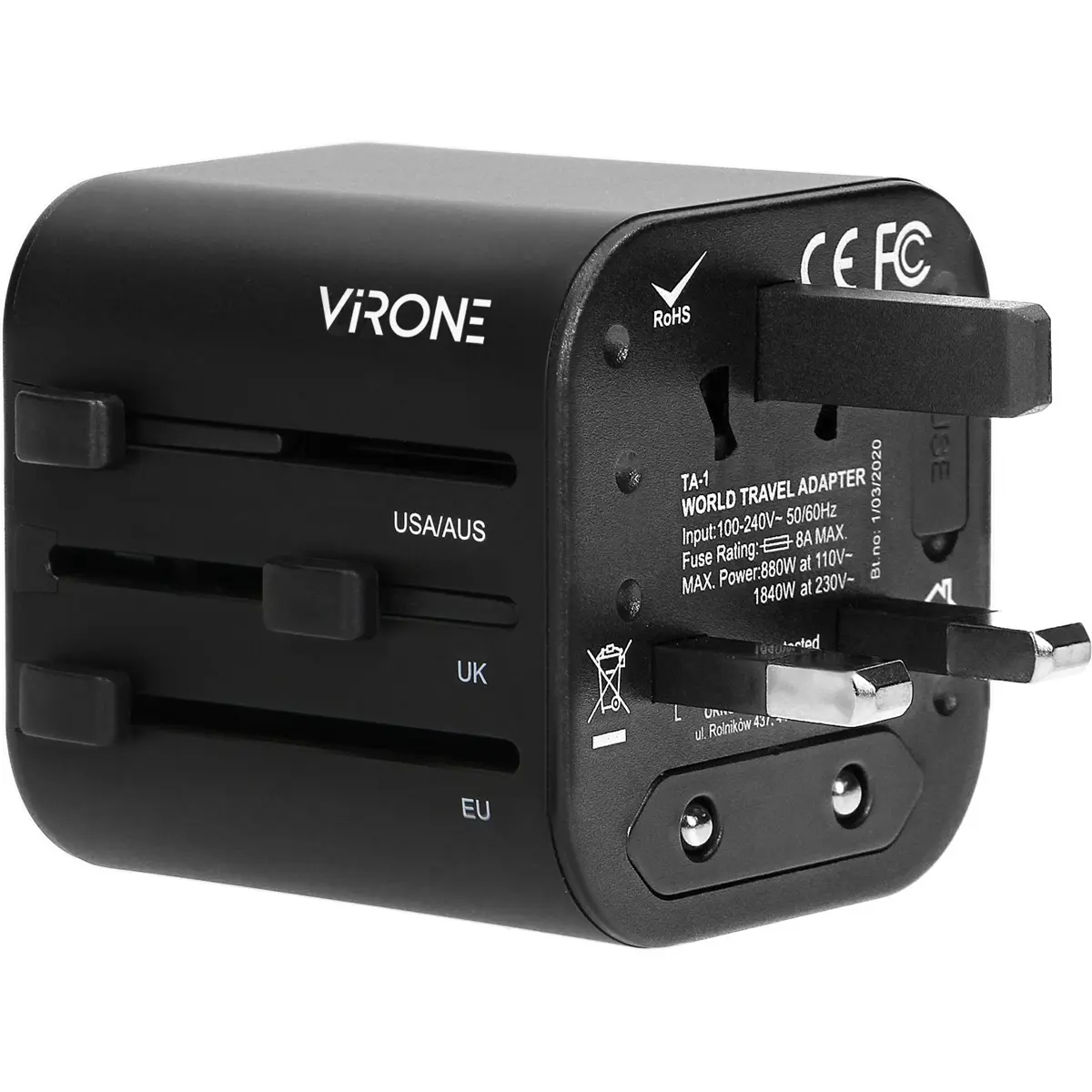 Virone - Adaptador de viagem universal (+ de 200 países)