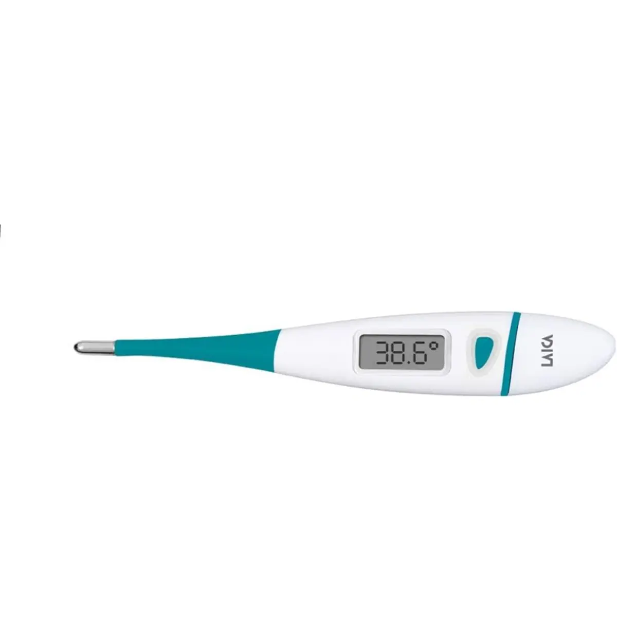 O termómetro digital LAICA TH3601 é um dispositivo confiável e eficiente para medir a temperatura corporal. Com sua tecnologia avançada, detecta a temperatura com facilidade, proporcionando resultados precisos e rápidos. O display LCD facilita a leitura da temperatura, seja oral, axilar ou retal. Sua sonda flexível torna o uso mais confortável, e possui um sinal acústico para indicar a conclusão da medição. O termómetro armazena a última medição e vem com um saco prático para proteção e higiene. Além disso, a sonda flexível é lavável, garantindo a higiene adequada. O LAICA TH3601 é uma escolha conveniente e confiável para monitorar a temperatura corporal.