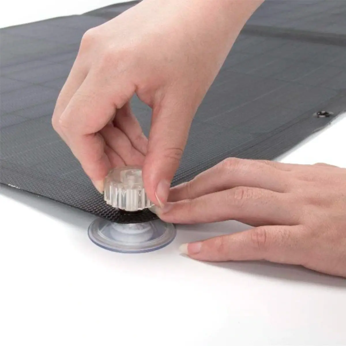 Estas ventosas permitem fixar facilmente um painel solar desdobrável da EcoFlow em superfícies de vidro, tejadilhos de automóveis e outras superfícies lisas.