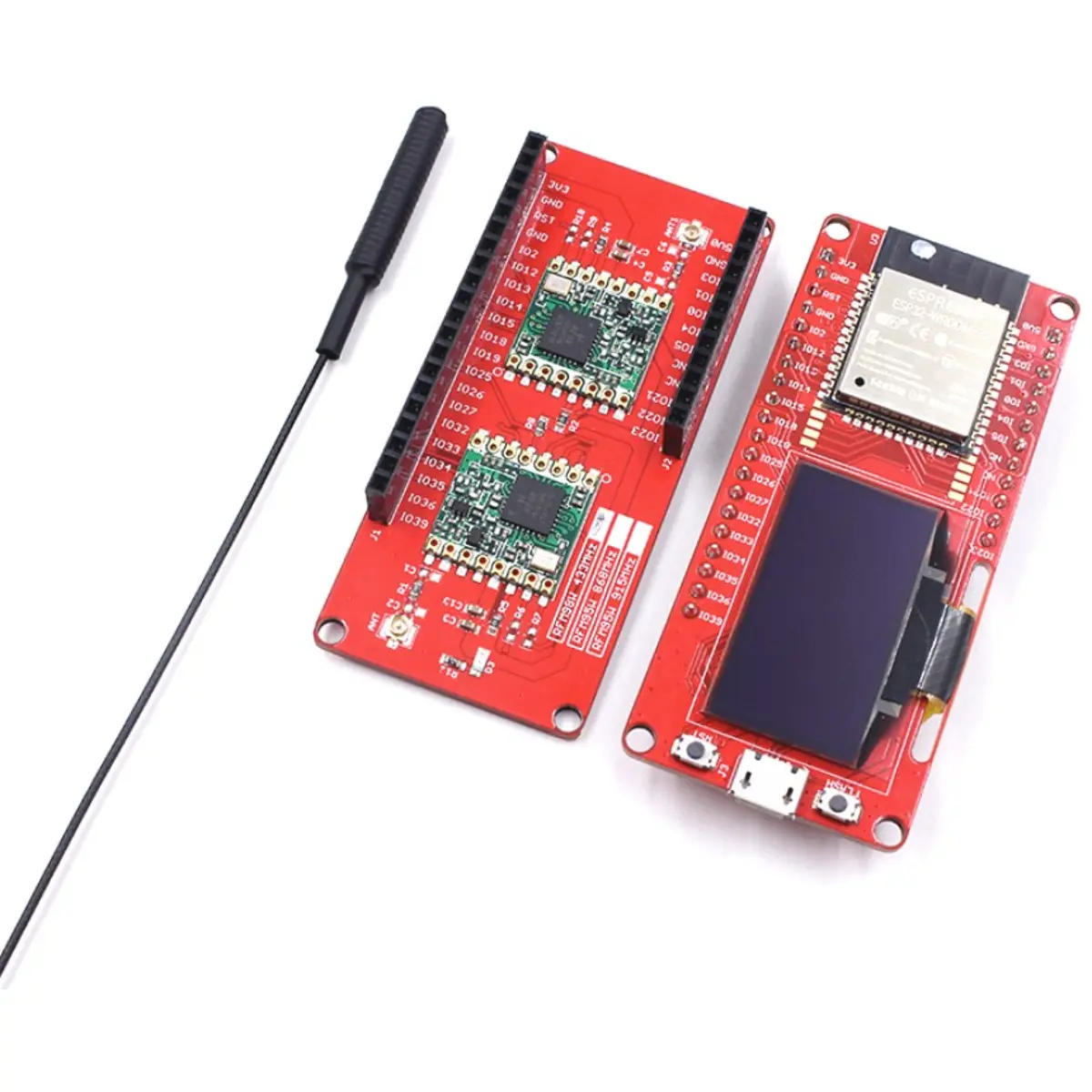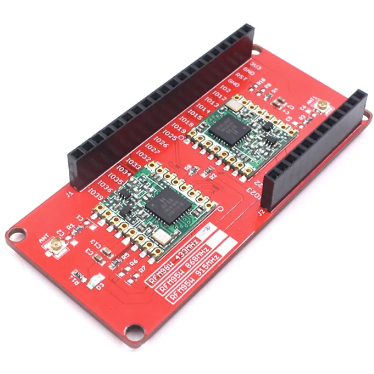 A placa de expansão Lora possui dois módulos de comunicação: um para transmitir dados (TX) e outro para receber (TX). Desta forma, permite efetuar comunicações Lora de uma forma mais rápida e conveniente.