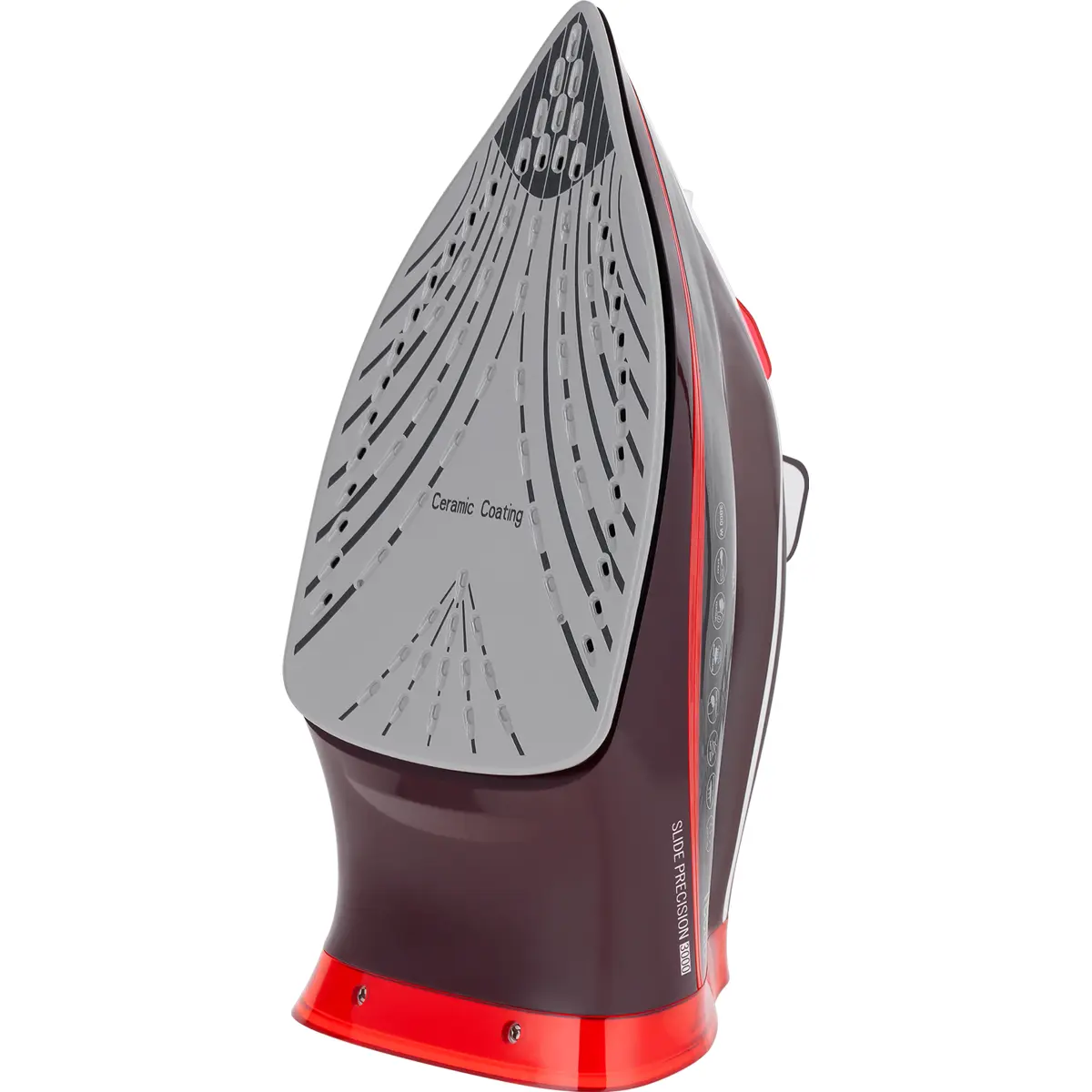 Uma característica digna de nota é a base revestida a cerâmica, que garante um bom deslizamento sobre o material e uma engomagem fácil. Além disso, é resistente a riscos e fácil de limpar.