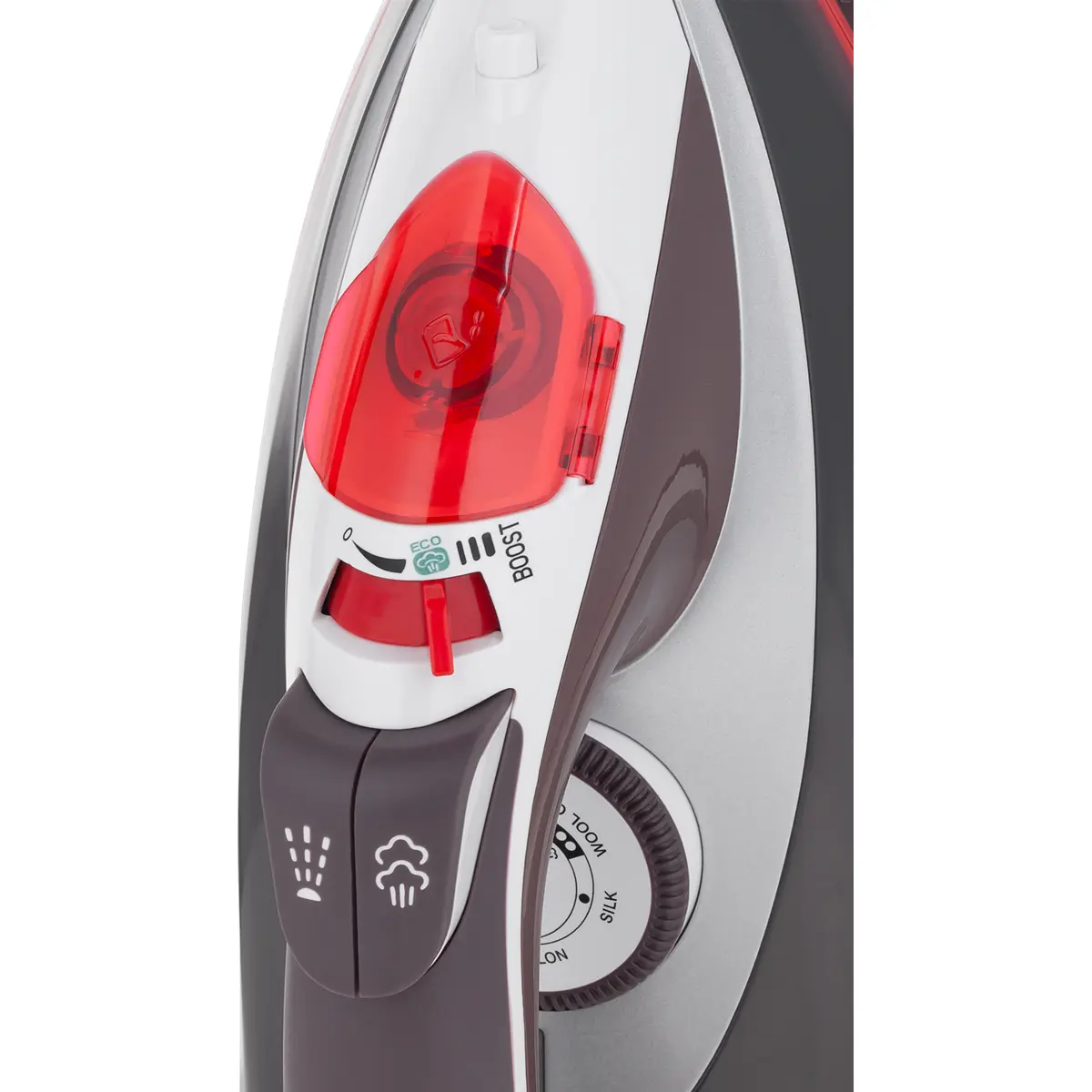 O ferro Teesa Slide Precision 3000 também tem um controlo de jacto de vapor contínuo de 3 níveis. No entanto, se o nível mais elevado - BOOST - não eliminar todos os vincos, utilize a função adicional de jacto de vapor.
