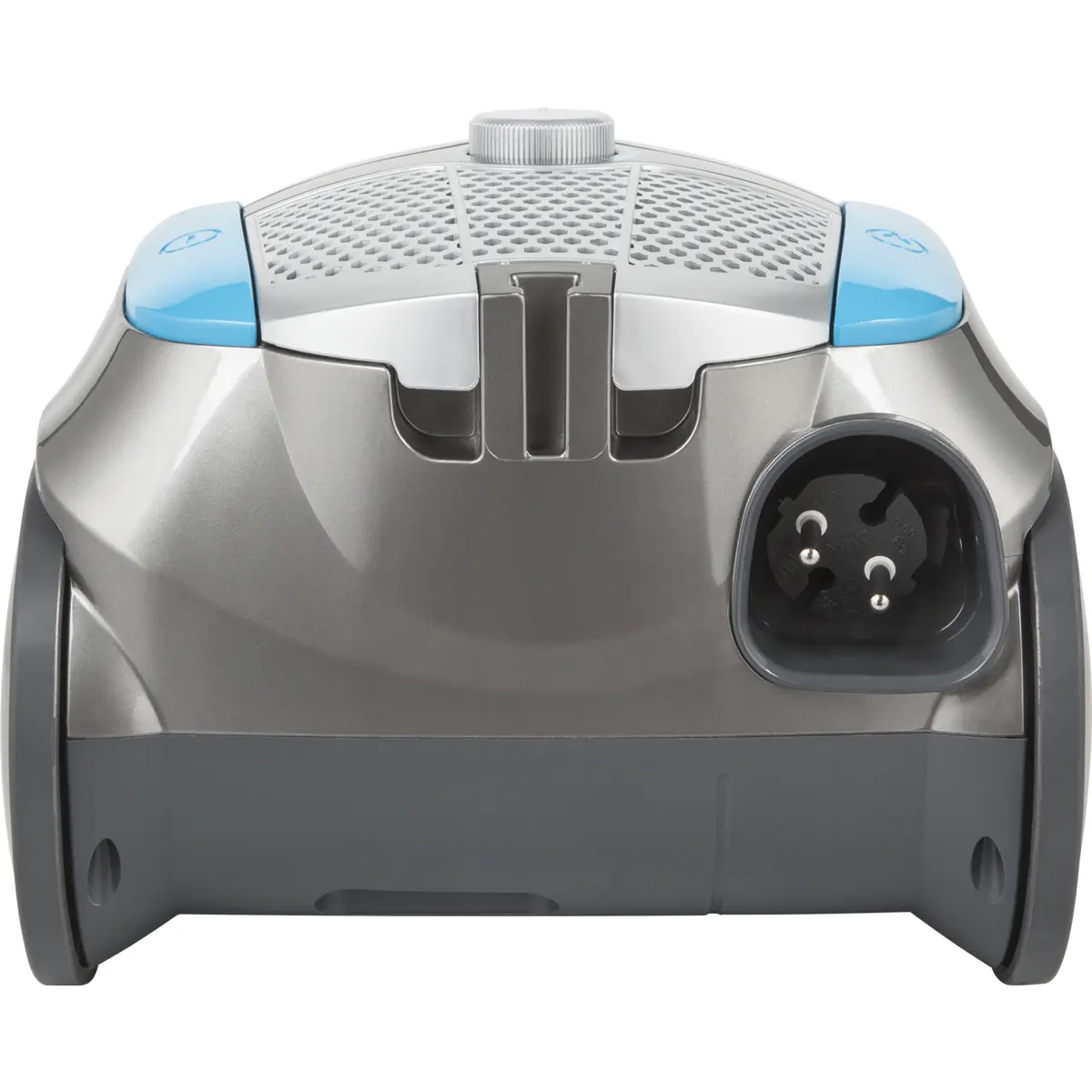 O aspirador doméstico de saco oferece 750 W de potência, 2 L de capacidade e filtro HEPA H13 para purificar o ar durante a aspiração. Com cabo de 5 m, alcance de 8 m e regulação da potência, facilita a limpeza de diferentes superfícies. O tubo telescópico com fecho de extensão, juntamente com bicos para fendas, bocal de chão de duas fases e bocal pequeno com almofada para parquet, permite limpar cantos, escadas e pavimentos. Possui indicador de saco cheio, rodas de borracha e armazenamento vertical/horizontal, com ruído <79 dB e consumo anual de 27,8 kWh.