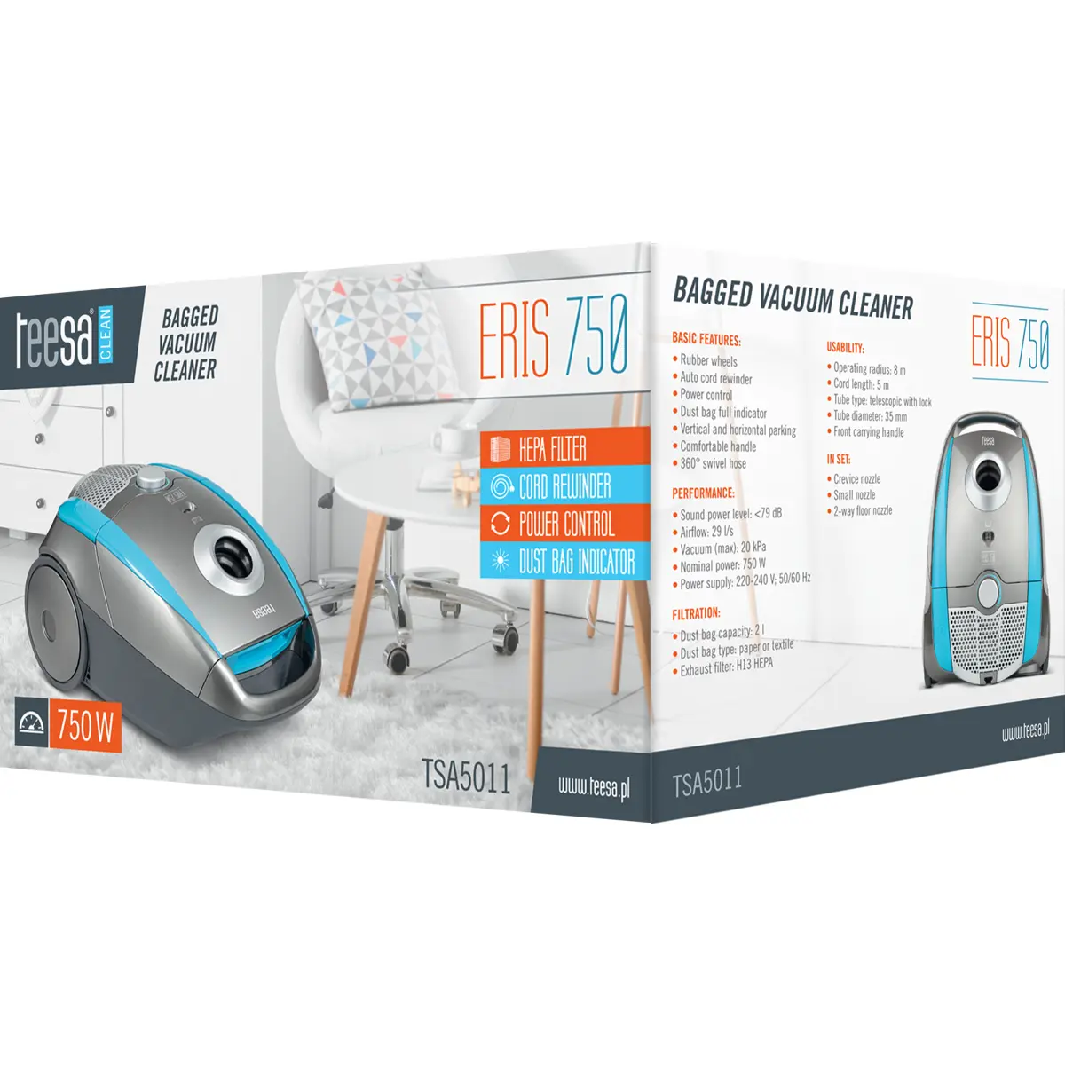 Teesa ERIS 750 - Aspirador doméstico de saco 2L 20kPa c/ filtro HEPA - 750W