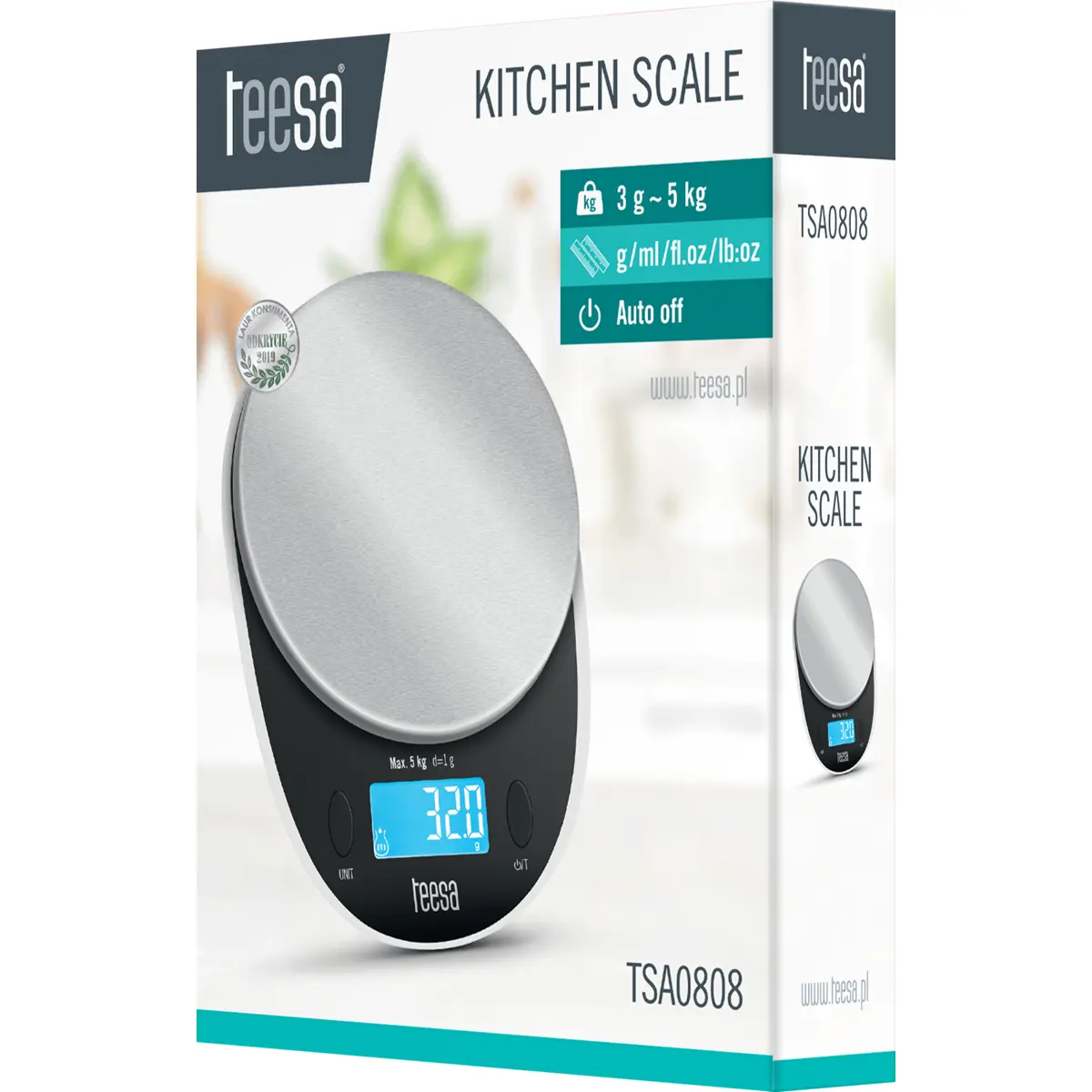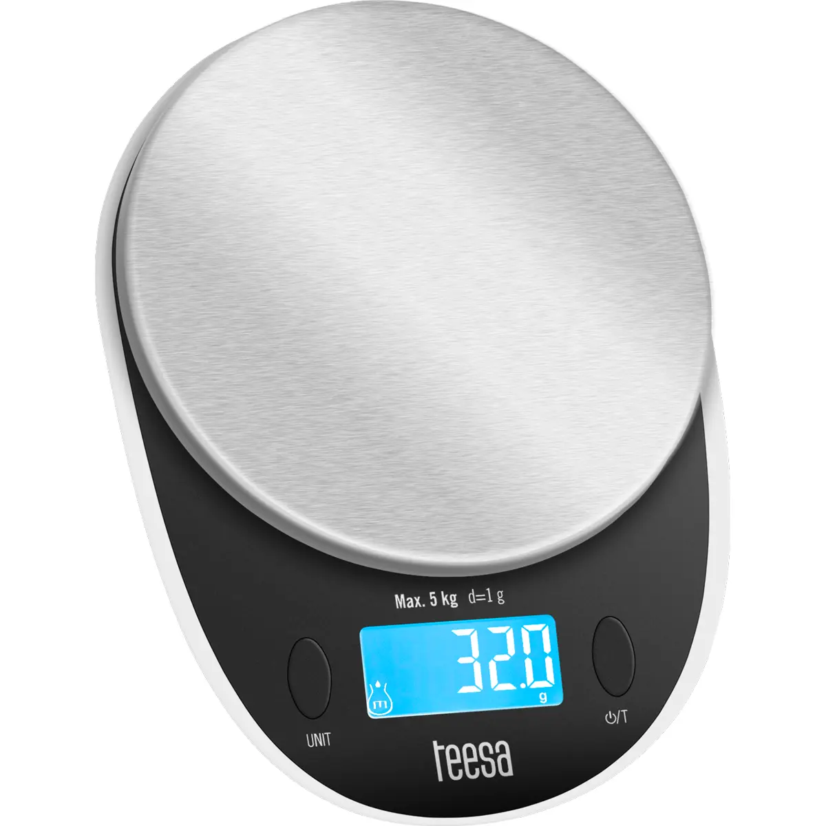 As balanças de cozinha são dispositivos sem os quais é difícil imaginar a preparação de refeições em casa. A TSA0808, com o seu peso máximo de 5 kg, mede com uma precisão de 1 g, pelo que pode ter a certeza de medir a quantidade exacta de ingredientes de que necessita. Uma grande vantagem da balança de cozinha Teesa é também a função tara, que é útil, por exemplo, quando se pretende pesar os produtos num prato.