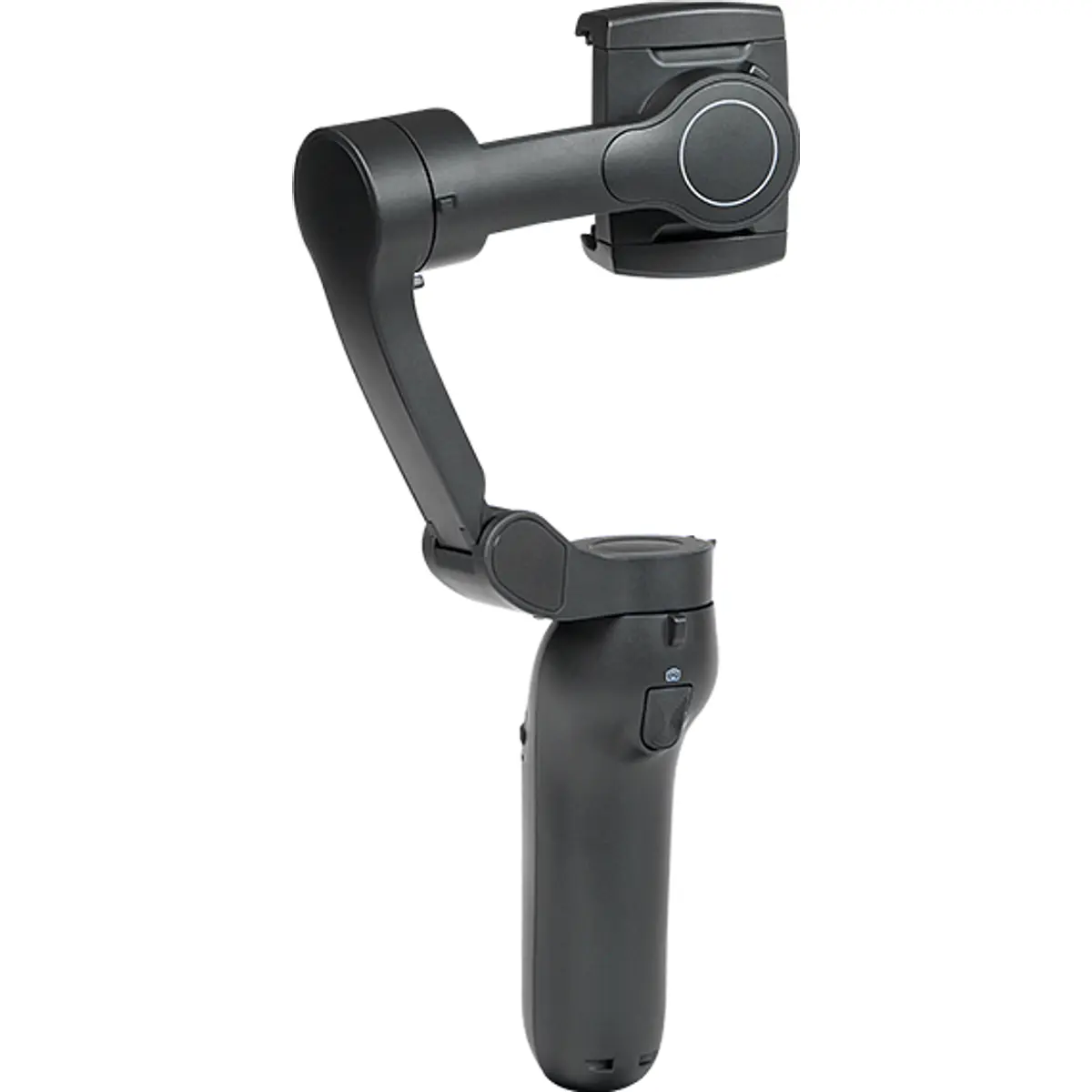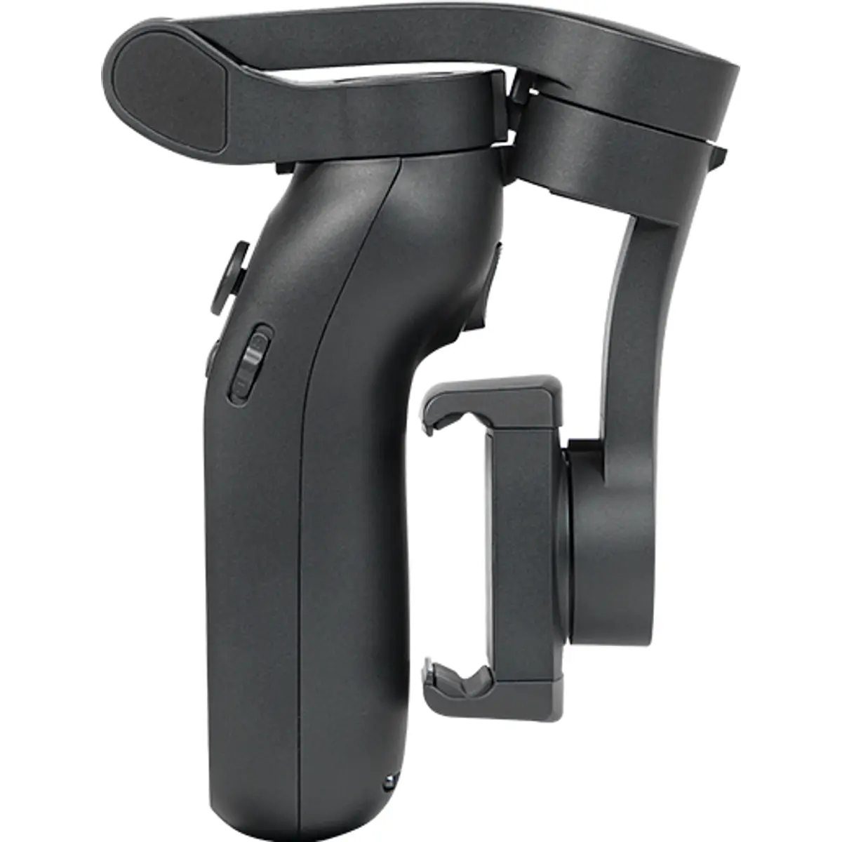 Este estabilizador gimbal dobrável para smartphone oferece rastreamento facial via app, transmissão ao vivo e alternância rápida entre modo retrato e paisagem. Possui display que mostra o modo e o nível de bateria. Suporta carregamento rápido: 5 minutos de carga rendem até 30 minutos, com adaptador de 2A. Compatível com câmaras de grande angular e telefones de largura 55-90 mm, diagonal até 180 mm e espessura 9,5 mm. App Gimbal Pro ou Pro2 disponível na Play Store e App Store; Android 8.0 mínimo.
