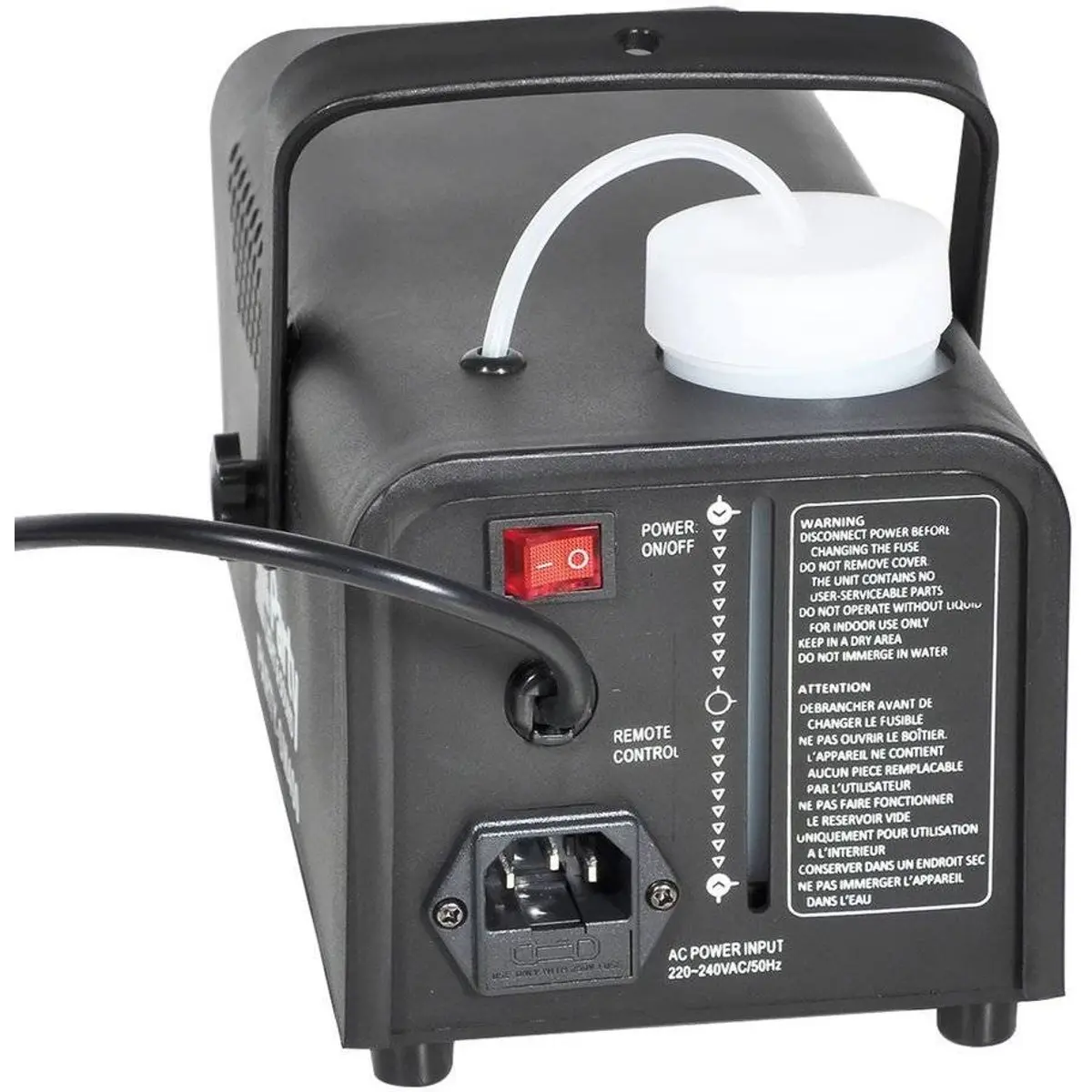 Máquina de fumos (nevoeiro) discreta, mas eficiente, que cria uma atmosfera misteriosa. Grande efeito quando utilizada em conjunto com uma unidade de efeitos de luz.