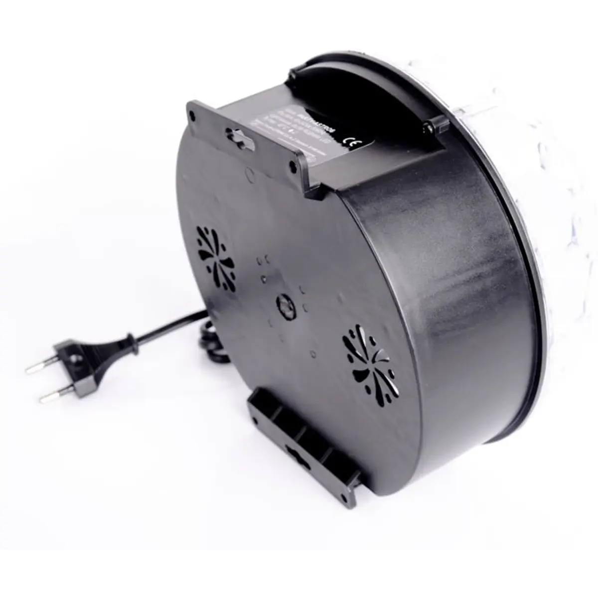 Este projetor de luz LED RGBWAV compacto oferece 200 feixes coloridos com 6 cores, ideal para discotecas, pubs, festas e DJs móveis. Possui dois modos de funcionamento: automático e sonoro, LEDs de longa duração, baixa produção de calor e baixo consumo de energia, permitindo uso contínuo por várias horas. Funciona entre 90-240V CA a 50/60 Hz, com 6 LEDs de 1W, rotação de 180°, peso de 500 g e dimensões de 185 x 185 x 150 mm, adequado para iluminação decorativa e de palco.