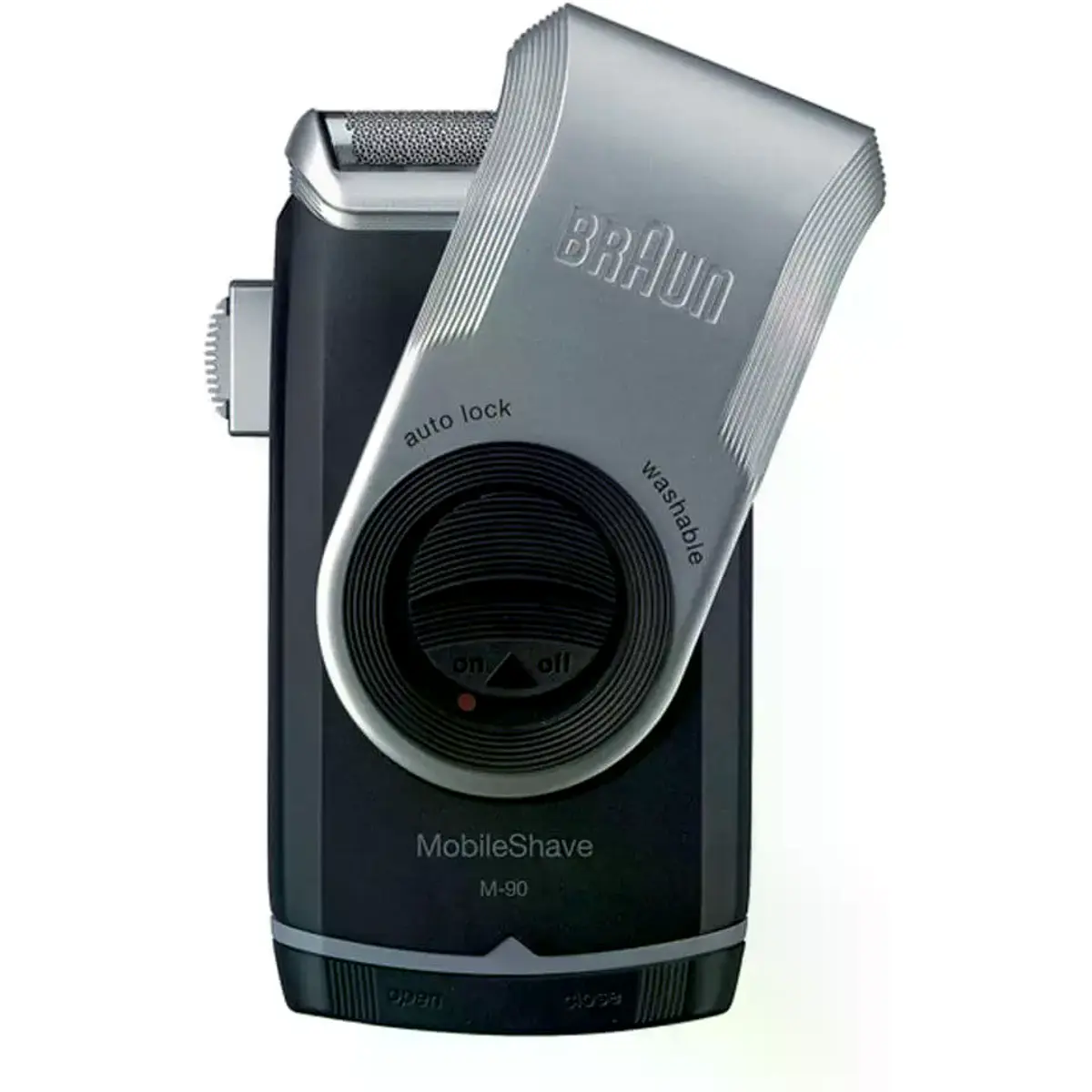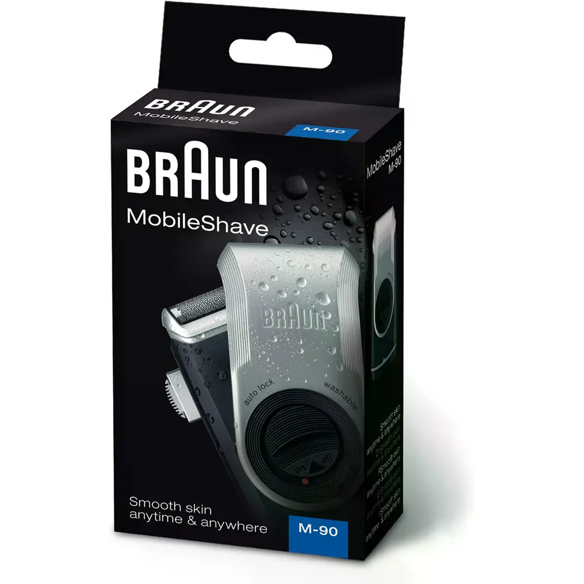 Braun MobileShave M90 - Máquina de barbear elétrica compacta de viagem c/ aparador de pelos (2x AA)