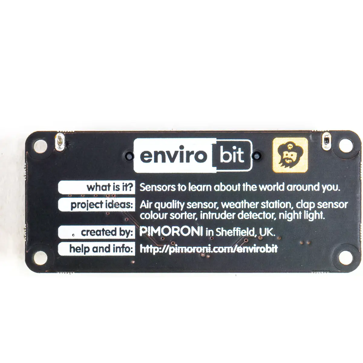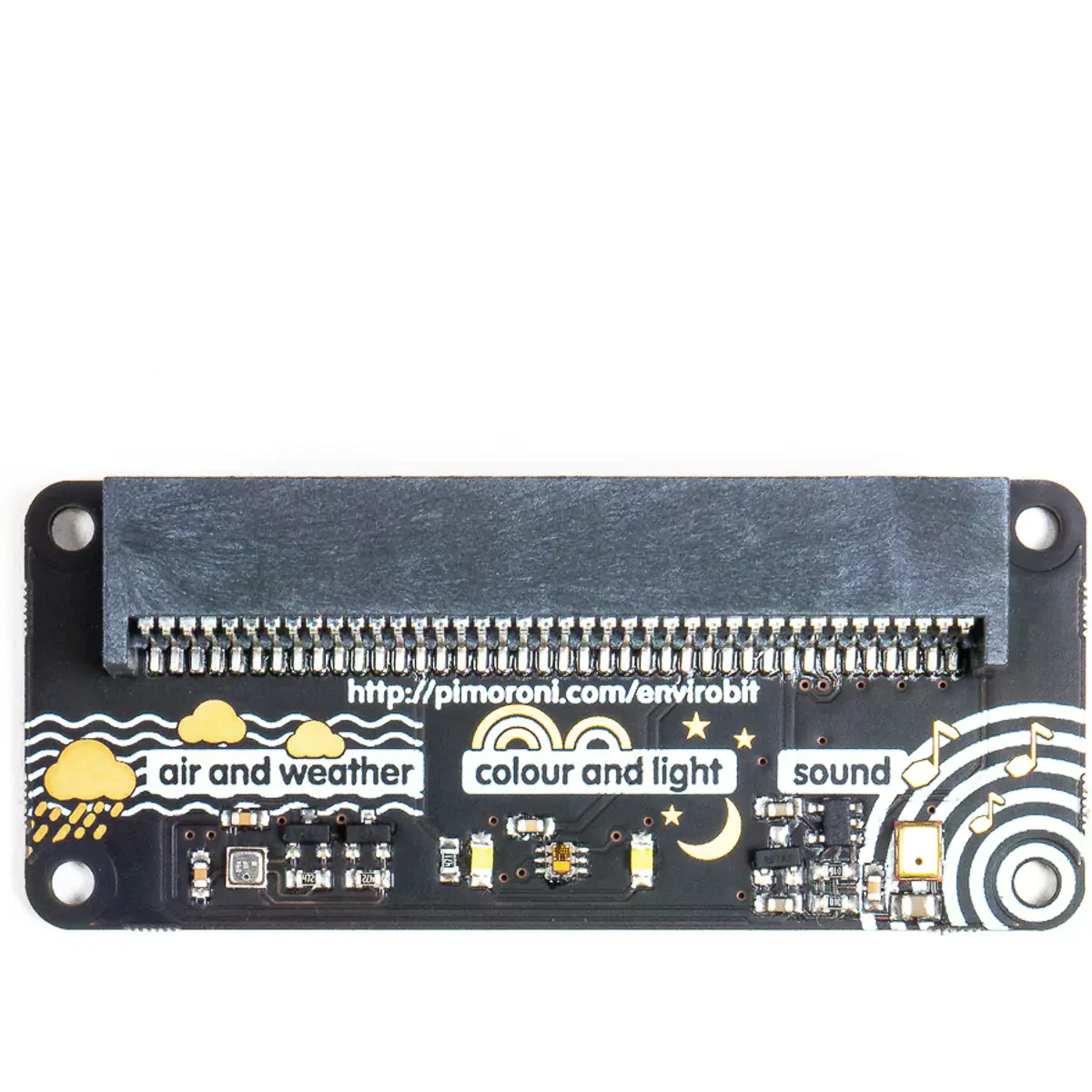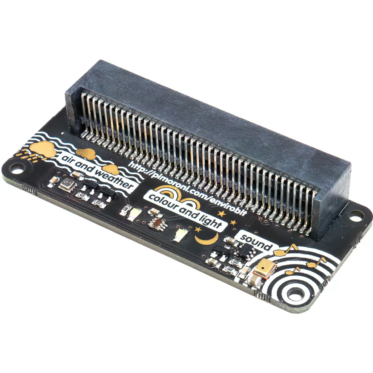 Sinta o mundo ao seu redor com o enviro:bit! Equipado com sensores de ar e clima, cor e luz, e som, e encaixa perfeitamente no seu micro:bit.