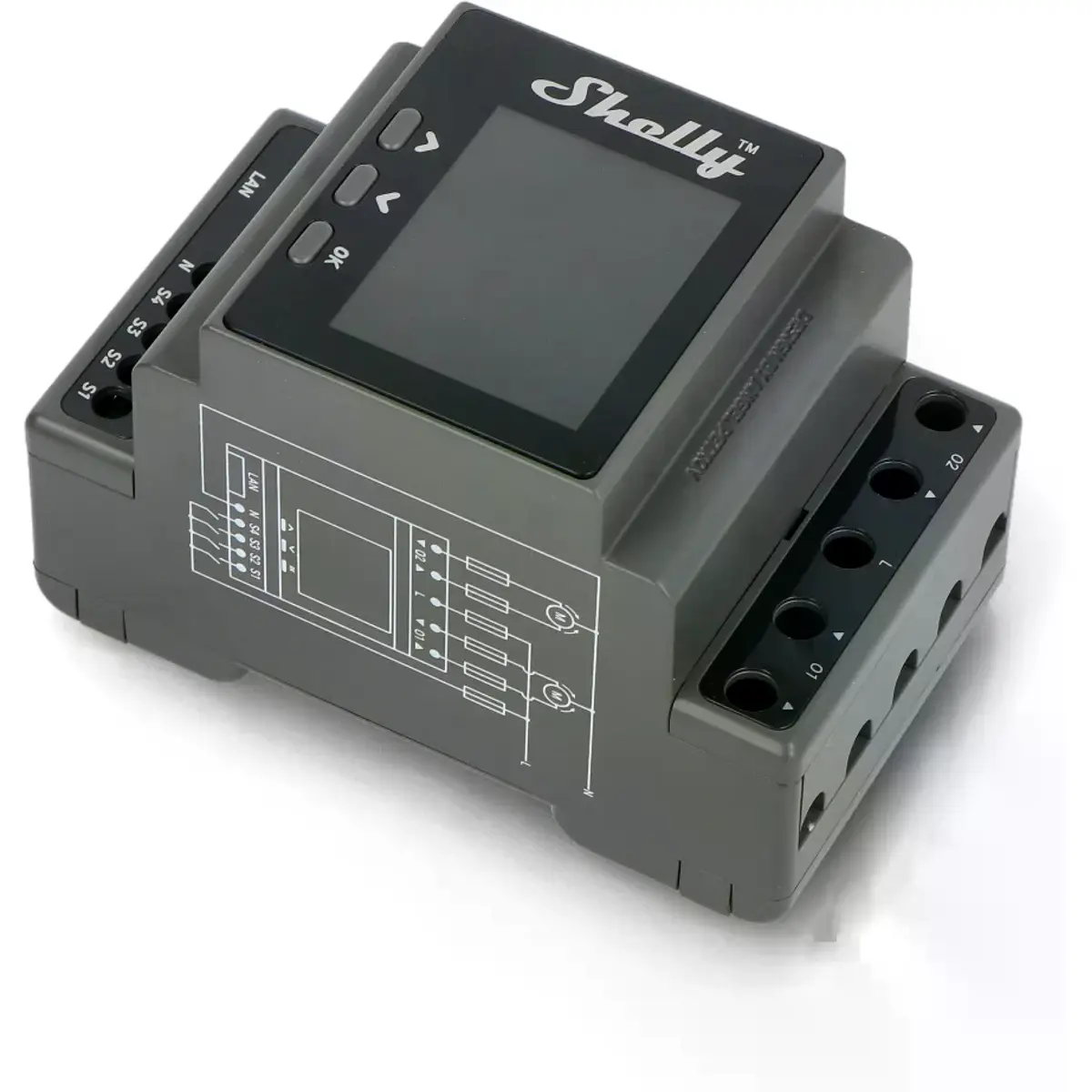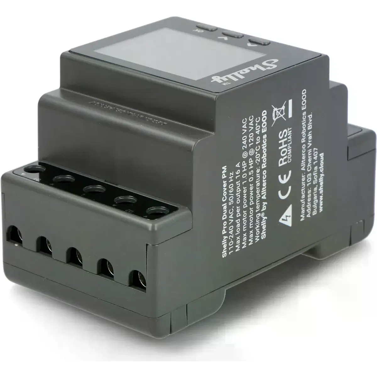 O Shelly Pro Dual Cover PM é um controlador inteligente de estores, toldos ou outros dispositivos elétricos que possuam motor AC bidireccional. Ele permite o controlo de dois motores, é montável em calha DIN e possui capacidades de medição de potência.