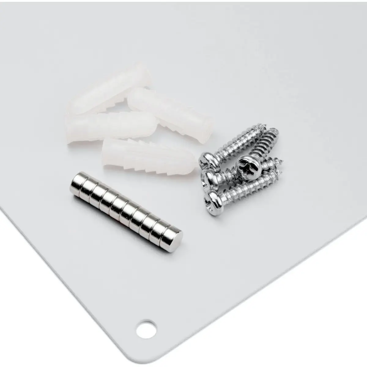 Além disso, o quadro magnético inclui dez mini ímanes. Estes são perfeitos para uso no quadro magnético e oferecem uma opção elegante e funcional para fixar documentos, notas ou qualquer outro material.