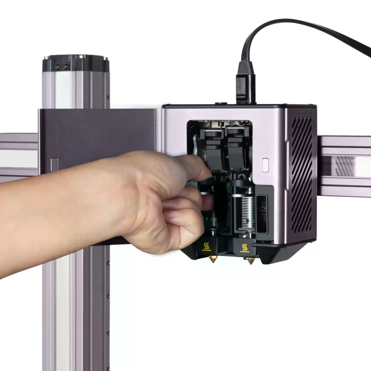 - Troca de Hot End ativa em apenas 3 segundos;