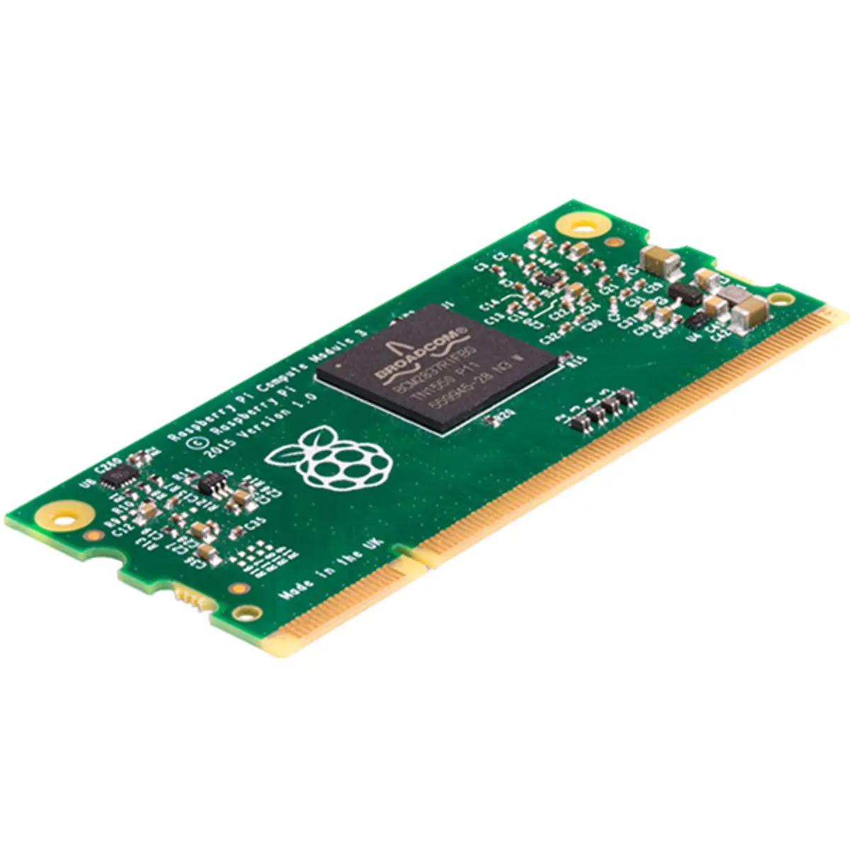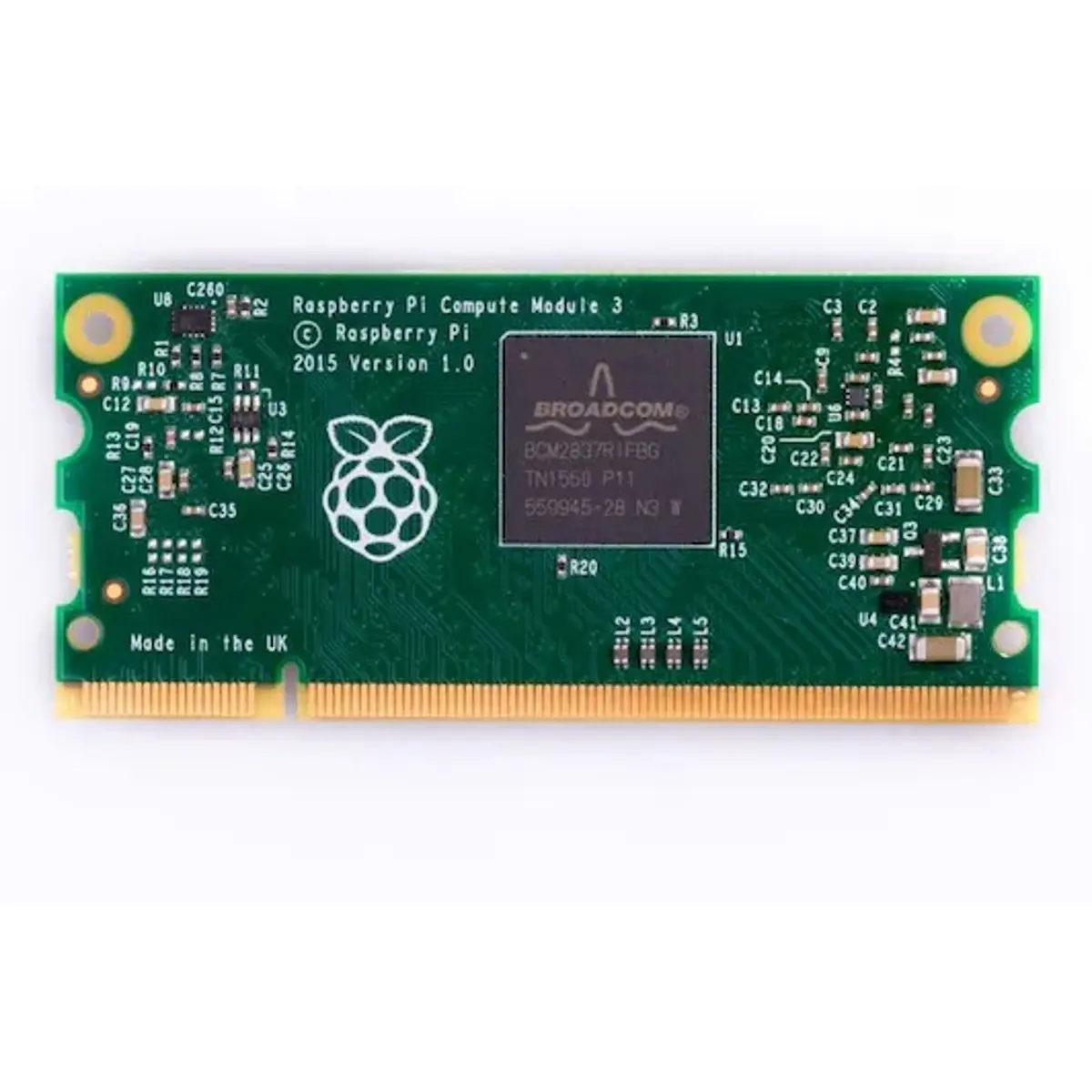 O Compute Module 3 contém os componentes de um Raspberry Pi 3 (o processador BCM2837 e 1GB de RAM), bem como um dispositivo Flash eMMC opcional de 4GB (que é o equivalente ao cartão SD no Pi). O Pi 3 tem uma velocidade de processador de 1.2GHz e funciona a uma velocidade cerca de 10 vezes superior à do Pi 1 devido ao seu CPU quad-core. Tudo isto está integrado numa pequena placa de 67,6 mm x 31 mm que se encaixa num conetor DDR2 SODIMM padrão (o mesmo tipo de conetor utilizado para a memória dos computadores portáteis). A memória Flash está ligada diretamente ao processador na placa, mas as restantes interfaces do processador estão disponíveis para o utilizador através dos pinos do conetor.