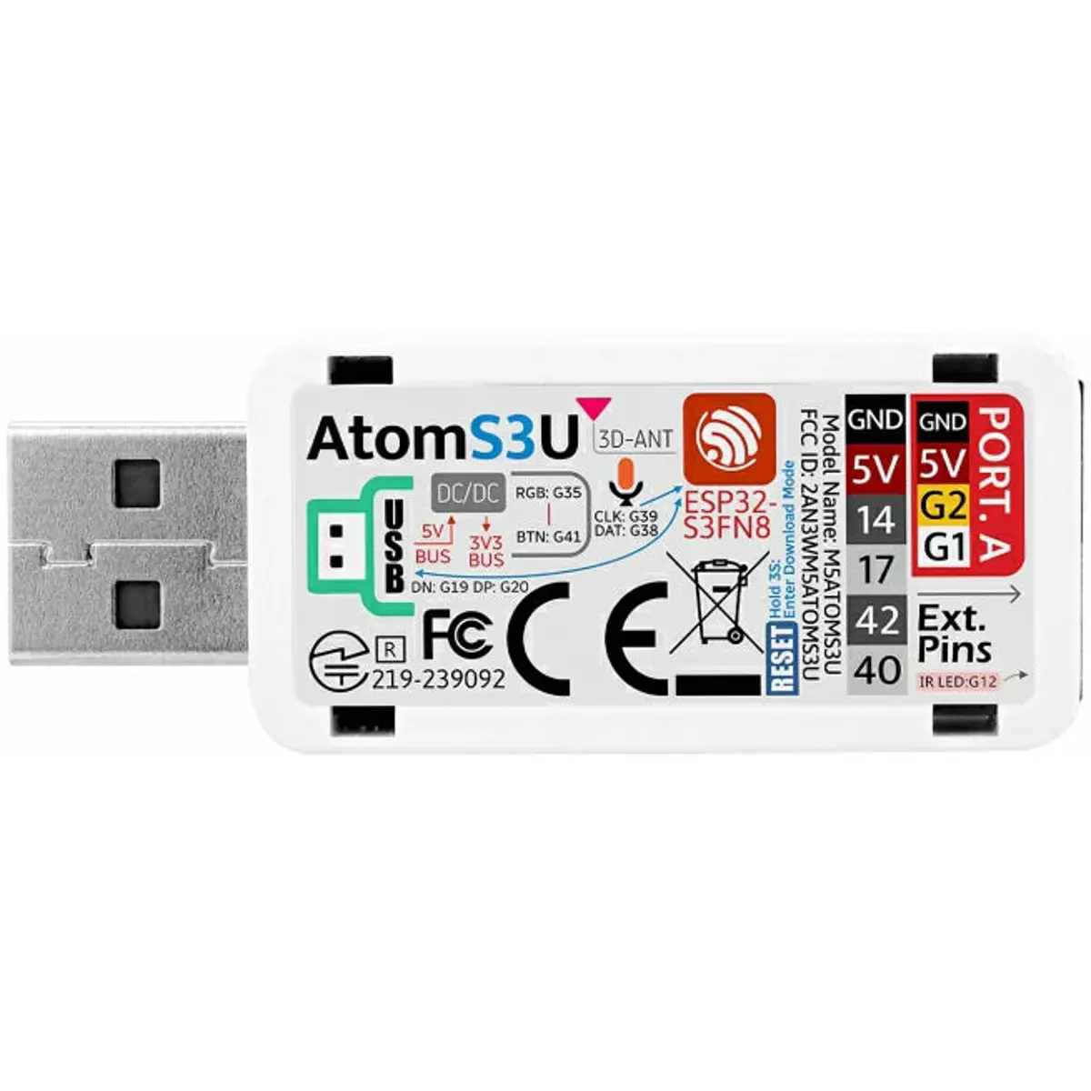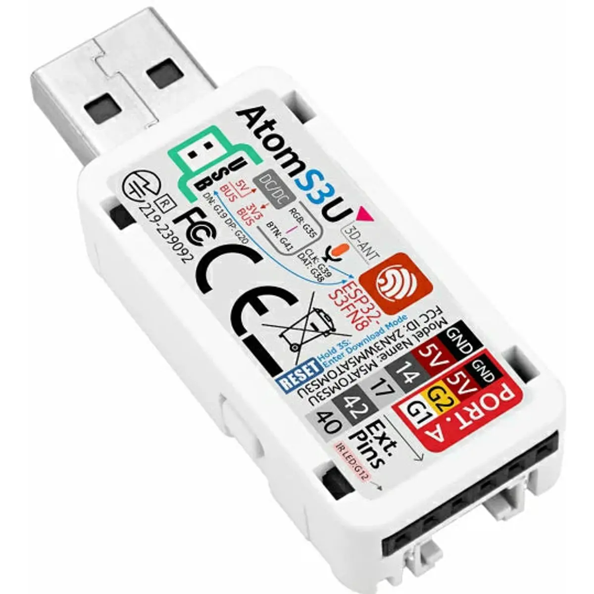A AtomS3U (ESP32S3 Development Kit with USB-A) é uma extraordinária placa de desenvolvimento multifunções ESP32-S3 em forma de Pen Drive. que irá revolucionar os seus projetos. Alimentada pelo chip de controlo principal ESP32S3 da Espressif, esta notável placa possui um processador Xtensa LX7 dual-core com uma frequência principal de 240MHz, proporcionando um desempenho excecional para as suas aplicações. Equipada com a funcionalidade WiFi incorporada, a conetividade sem fios está na ponta dos seus dedos.