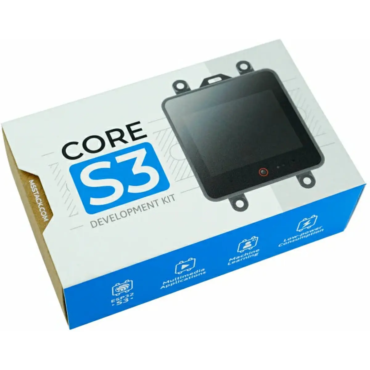 O CoreS3 (ESP32S3 loT Development Kit) é a terceira geração da série M5Stack Core. Alimentado pela solução ESP32-S3, este módulo inclui um processador Xtensa LX7 dual-core a 240 MHz e está equipado com funcionalidade Wi-Fi incorporada, permitindo uma conetividade sem falhas. Possui 16 MB de memória flash integrada e 8 MB de PSRAM, proporcionando um amplo espaço para armazenamento de programas.