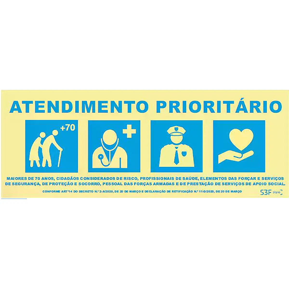 Placa de sinalização fotoluminescente ''Atendimento Prioritário'' (p/ profissionais) - 200x100mm