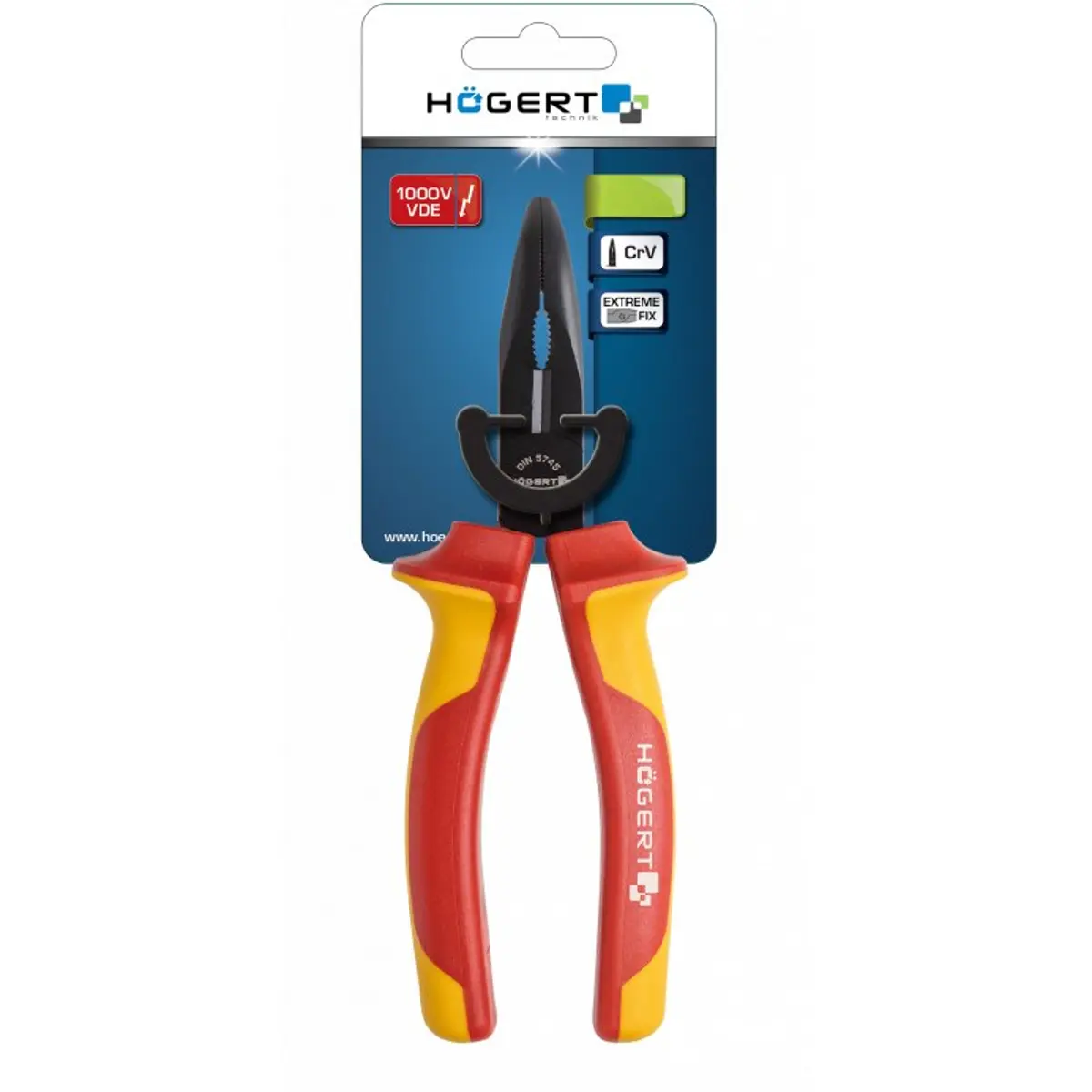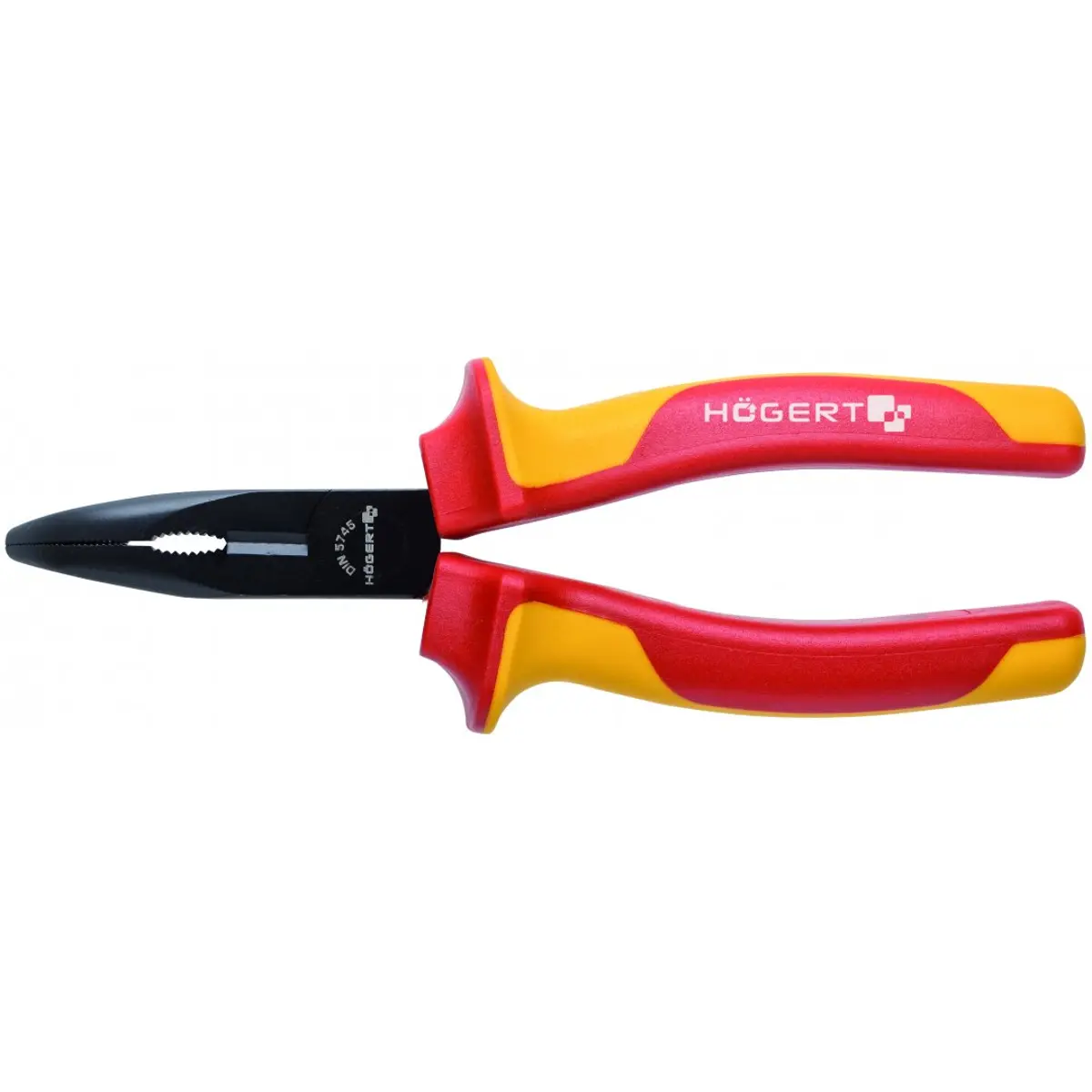 Alicate de pontas curvas projetado especificamente para eletricistas, ideal para cortar e moldar condutores e fios. Certificado para operação segura com tensões de até 1000 V e capaz de lidar com cargas médias e pesadas.
