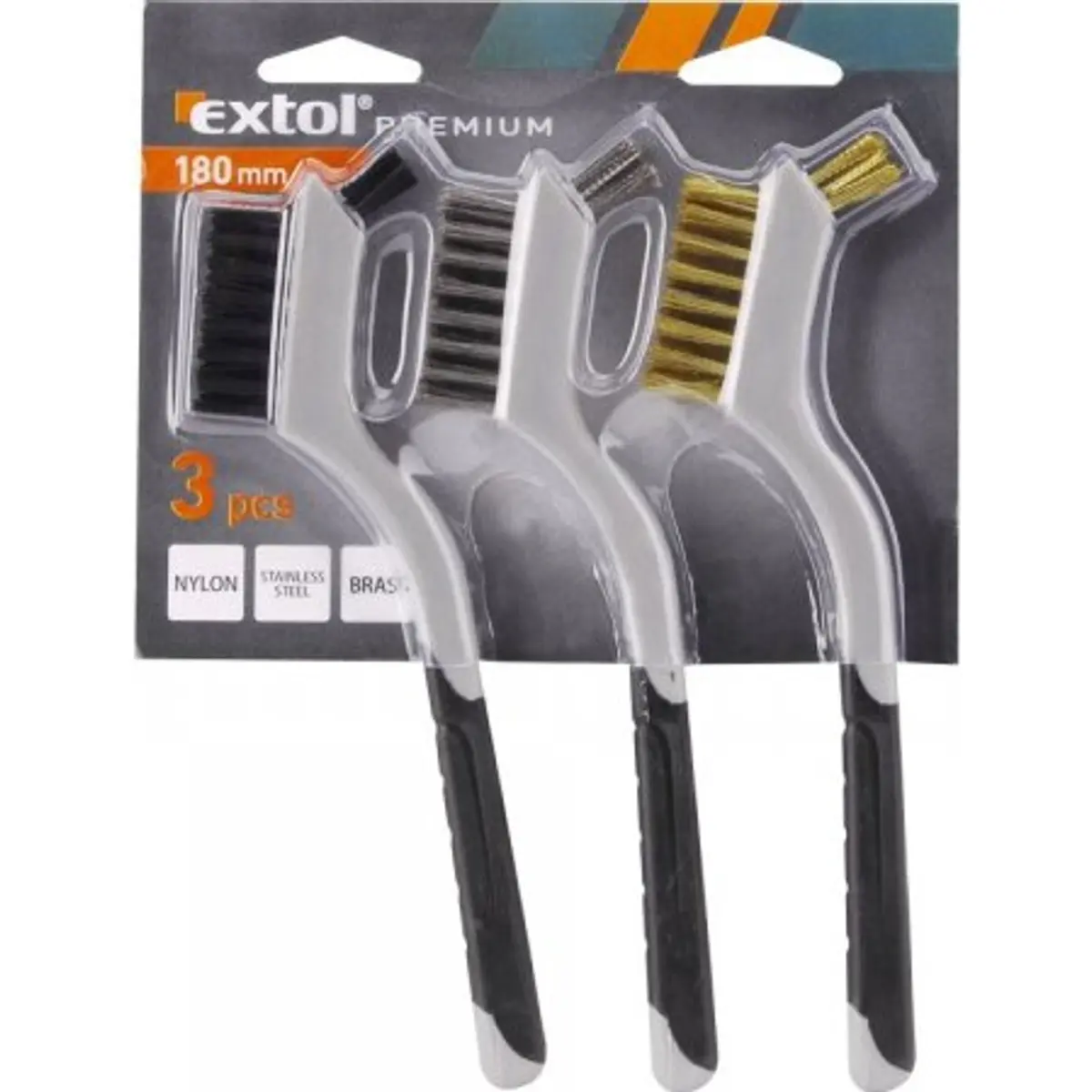 Extol - Conjunto de 3 escovas de limpeza dupla (aço / latão / nylon)