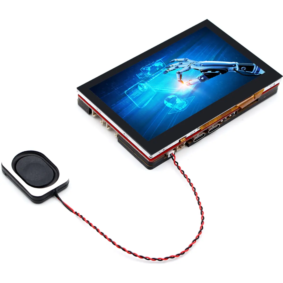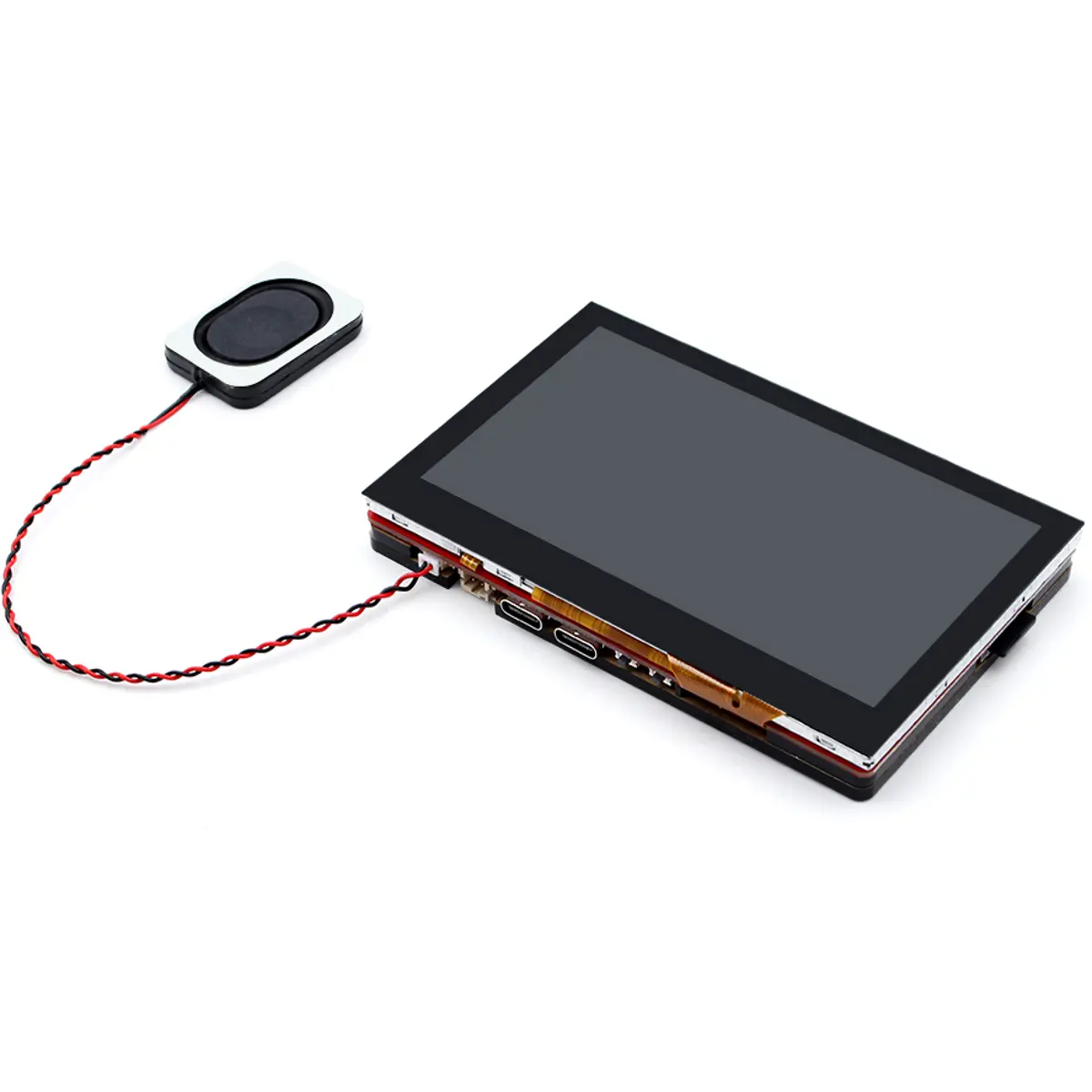 Este ecrã tátil de 4.3 polegadas com painel IPS apresenta resolução 800x480 e interface RGB565 paralela, ideal para aplicações IoT e domótica. Alimentado por ESP32-S3-WROOM-1 com 16 MB de flash e 8 MB de PSRAM, inclui WiFi e Bluetooth 5.0, RTC integrado, microSD e dois conectores Mabee/Grove para sensores. Possui controlo GT911 para toque de 5 pontos, USB-C duplo (USB-to-UART via CP2104 e USB nativo) e é compatível com Arduino. Opera entre -40 °C e +85 °C, oferecendo mais de 30 FPS.