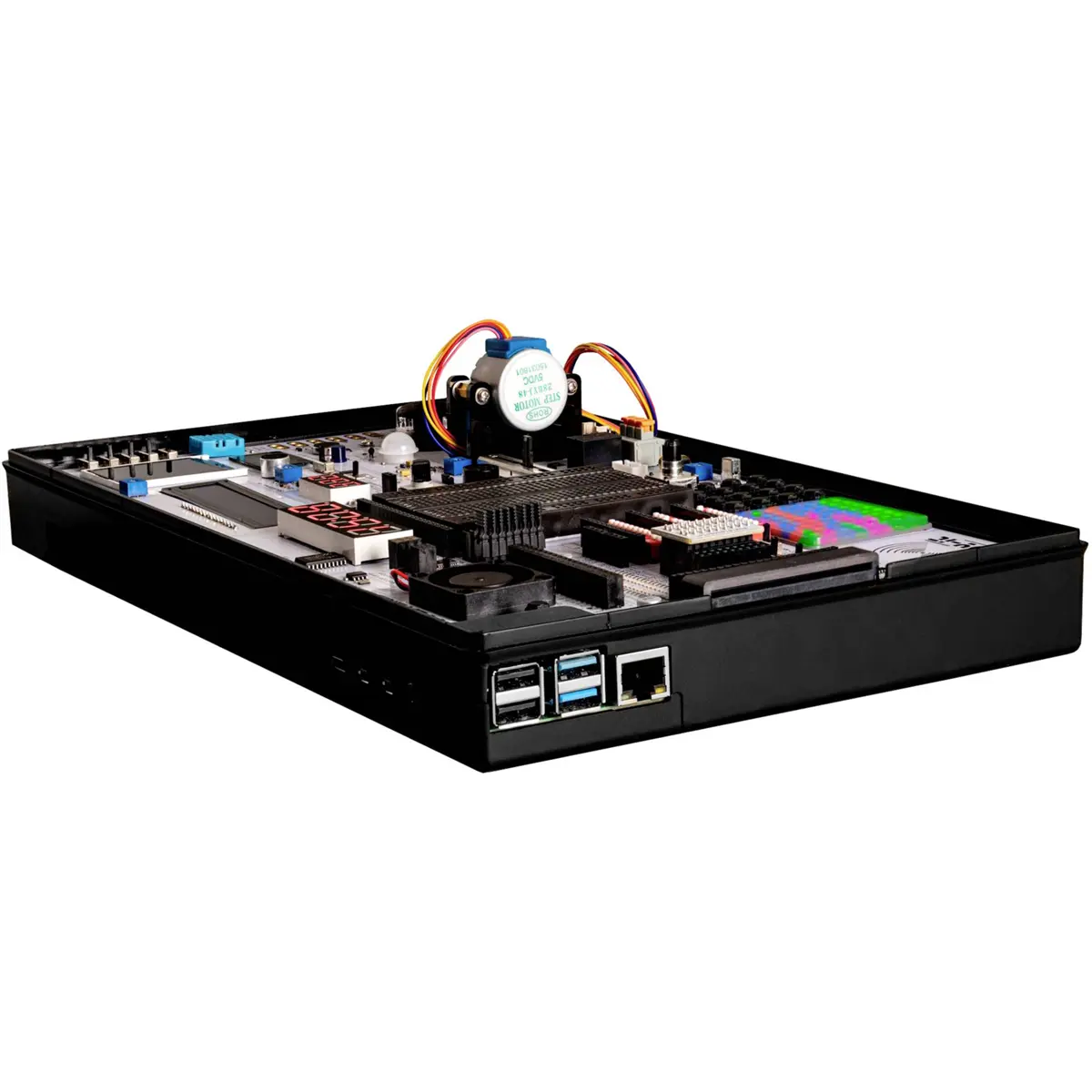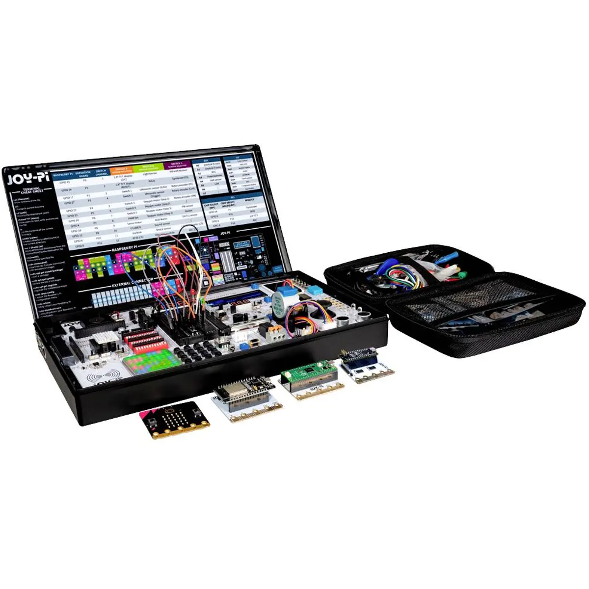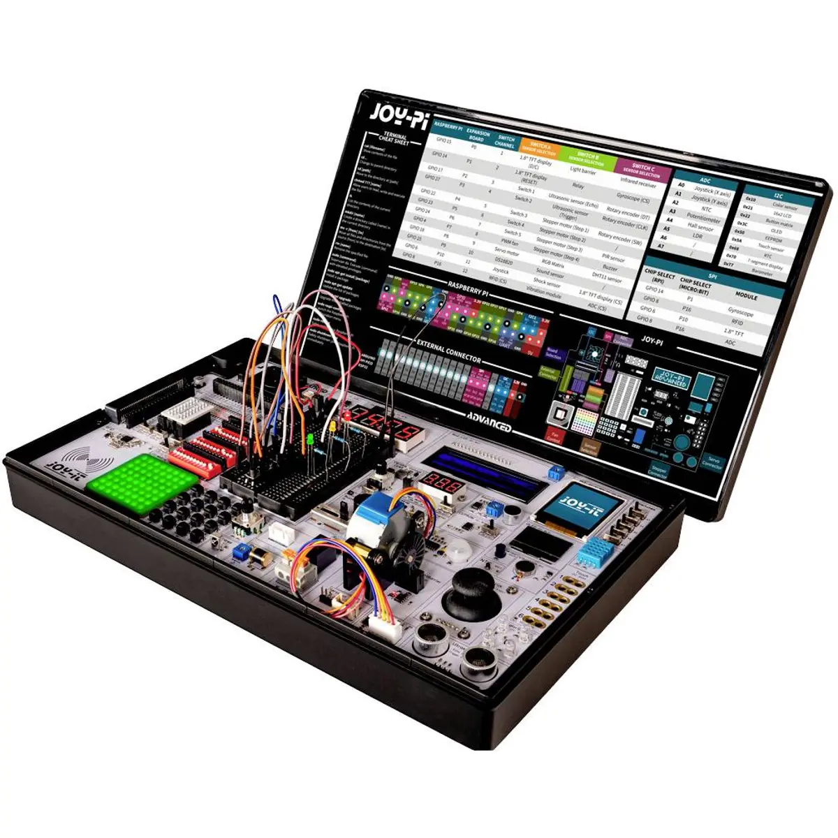 O Joy-Pi Advanced é uma mala de aprendizagem compacta e poderosa que permite concretizar os seus projetos de forma rápida e fácil. Independentemente da sua experiência, o Joy-Pi Advanced permite que liberte a sua criatividade. Graças à sua compatibilidade com uma vasta gama de plataformas, incluindo Raspberry Pi, Raspberry Pi Pico, Arduino Nano, BBC micro:bit e NodeMCU ESP32, pode aceder facilmente à sua plataforma preferida de forma rápida.