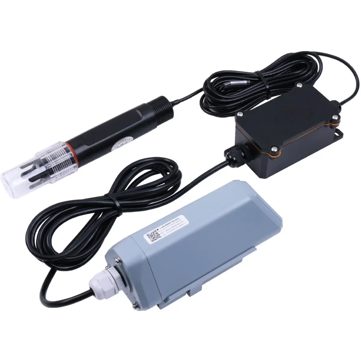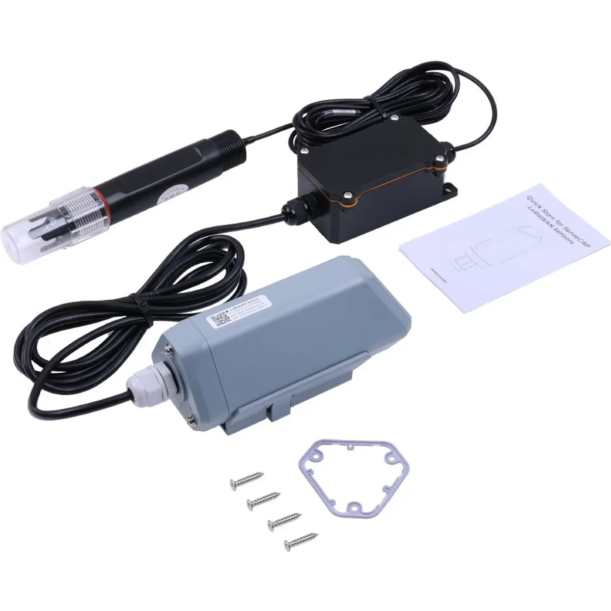 O sensor de pH SenseCAP LoRaWAN S2106 mede o pH na gama de 0~14 e envia os dados para a Internet através de uma rede LoRaWAN.