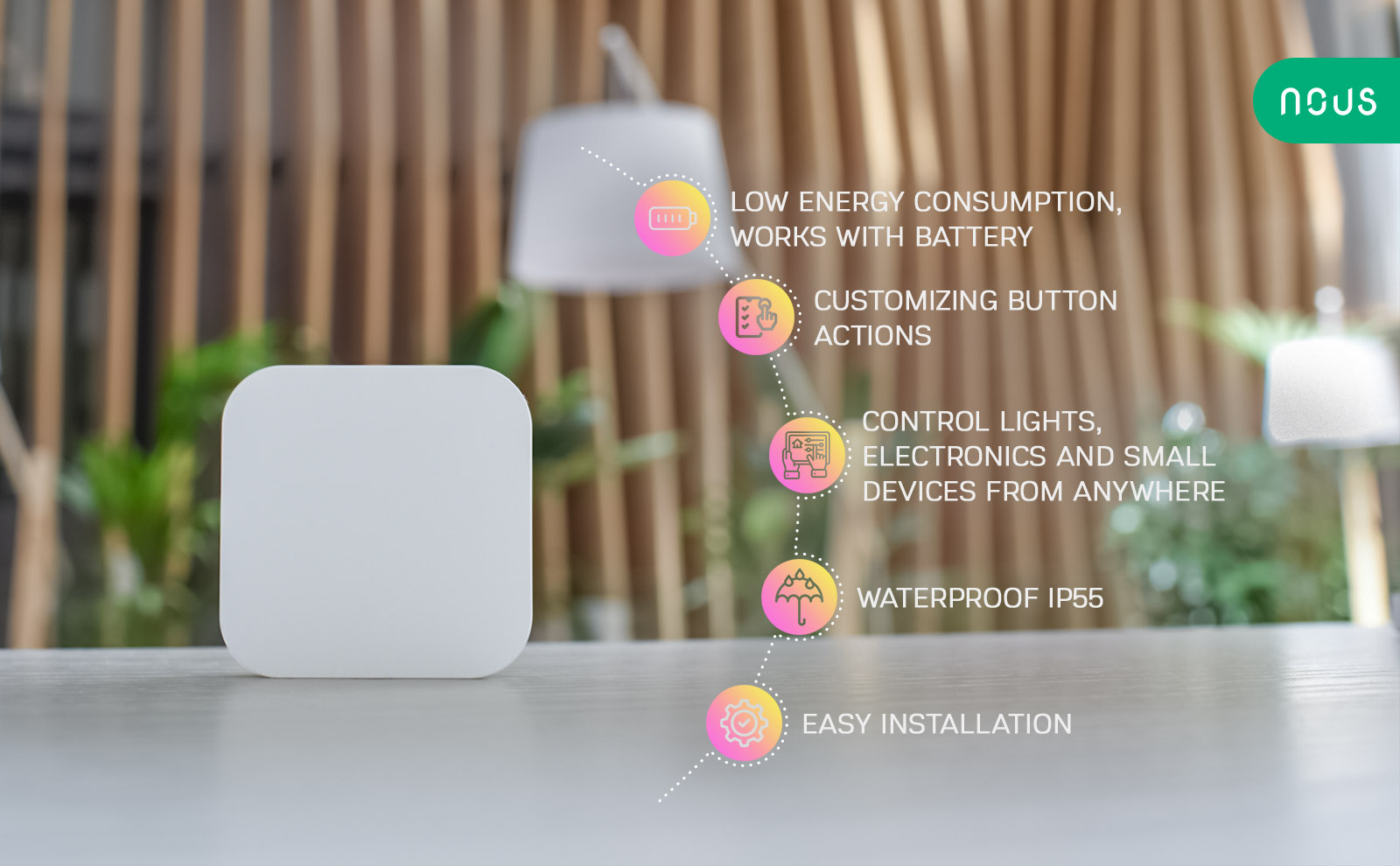 O Nous LZ4 (Smart Wireless Mini ZigBee Switch Button) é um botão inteligente que permite controlar facilmente os aparelhos inteligentes em sua casa, com apenas um toque. Ele possui três ações: toque simples, toque duplo e pressão prolongada, que podem ser vinculadas à ativação de qualquer dispositivo ou automação inteligente em sua casa.
