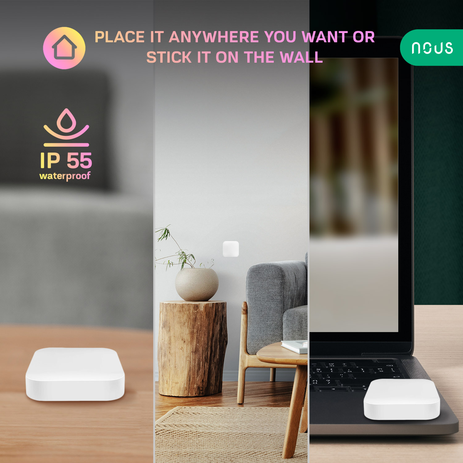O dispositivo funciona com o Nous Smart App e o Tuya Smart Life, permitindo personalizar as soluções domésticas inteligentes e gerenciar os dispositivos de qualquer lugar.