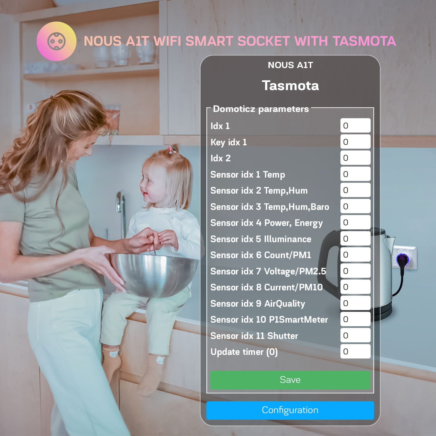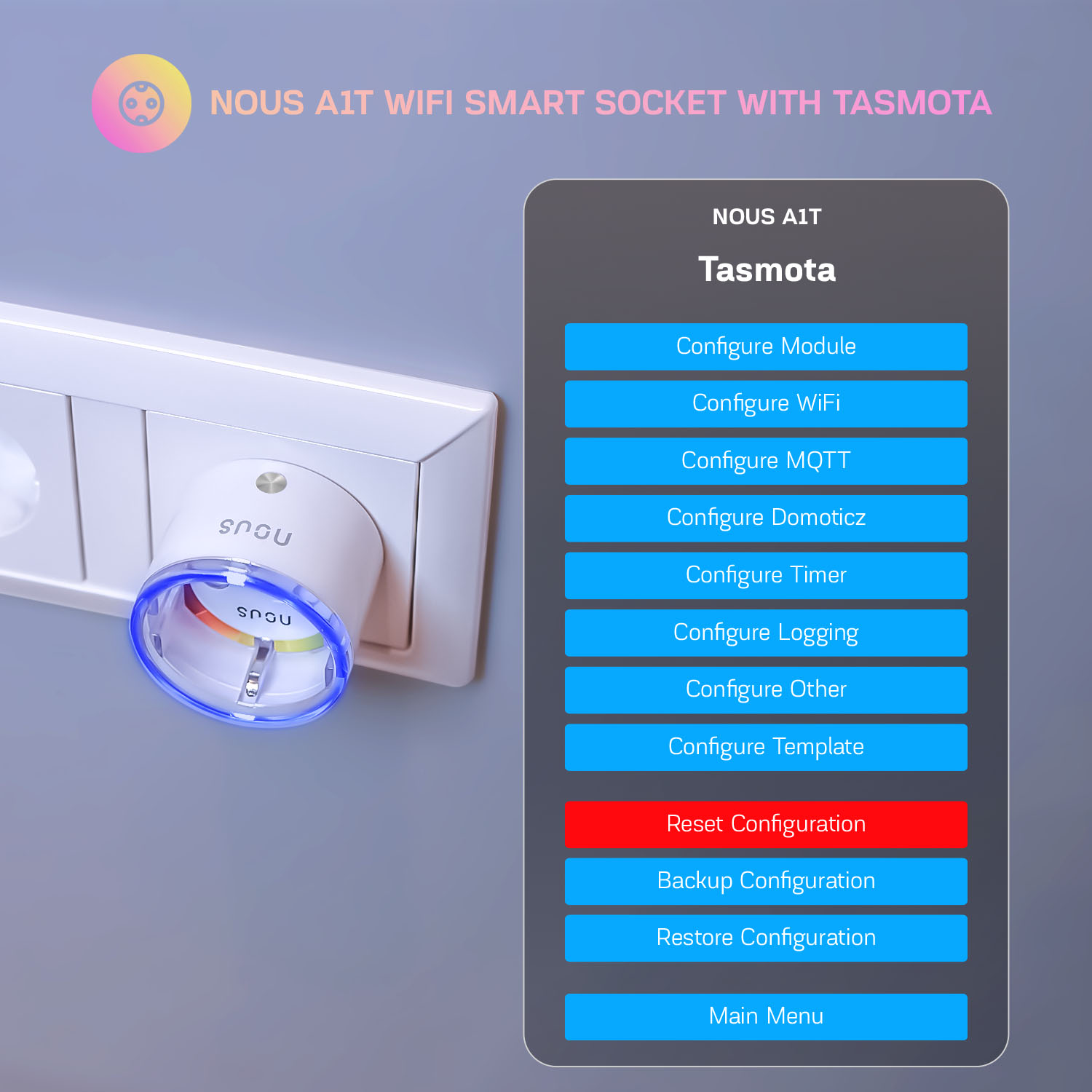 A NOUS A1T (Smart WIFI Socket with Tasmota) é uma tomada com conectividade WiFi, que transforma os seus aparelhos elétricos normais em aparelhos inteligentes, mas, ao contrário da maioria das outras tomadas deste género, esta vem com um Firmware de código aberto instalado, o Tasmota. Trata-se de um firmware poderoso, personalizável e Open Source, que lhe dá mais controlo e segurança sobre os seus dispositivos domésticos inteligentes.
