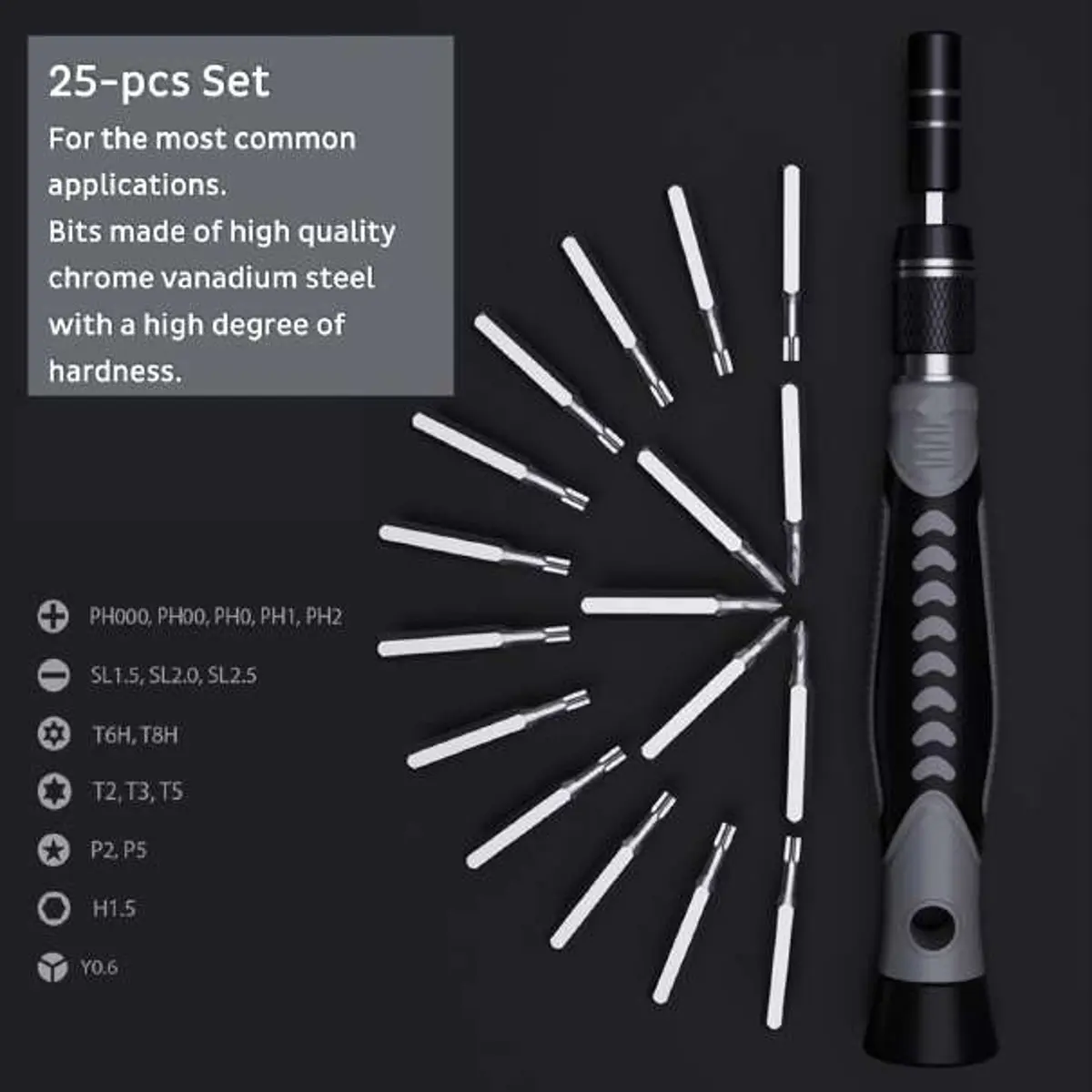 PCWork PCW08H - Conjunto de chaves de precisão e ferramentas de abertura de telemóveis [25 pcs]