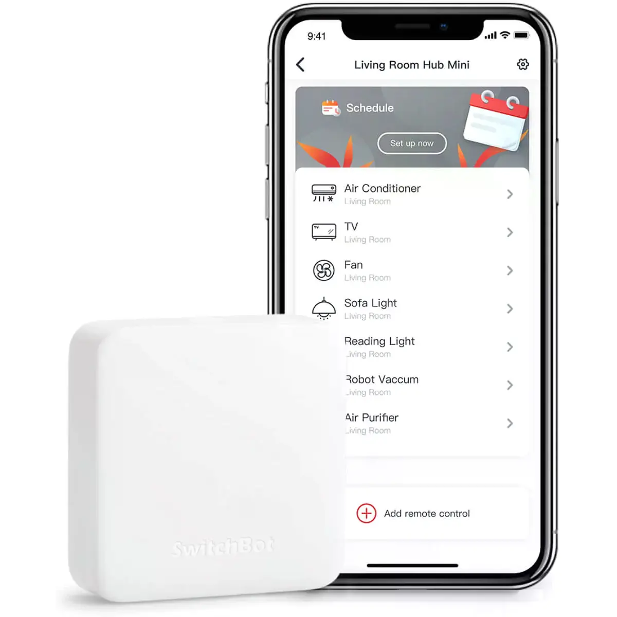 E se quiser ligar/desligar dispositivos quando não estiver em casa, o SwitchBot Hub Mini pode ajudar. Ele permite o controlo dos seus aparelhos de forma remota com facilidade.