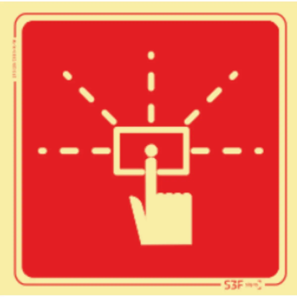 Placa de sinalização fotoluminescente ''Sinal de botão de alarme'' - 100x100mm