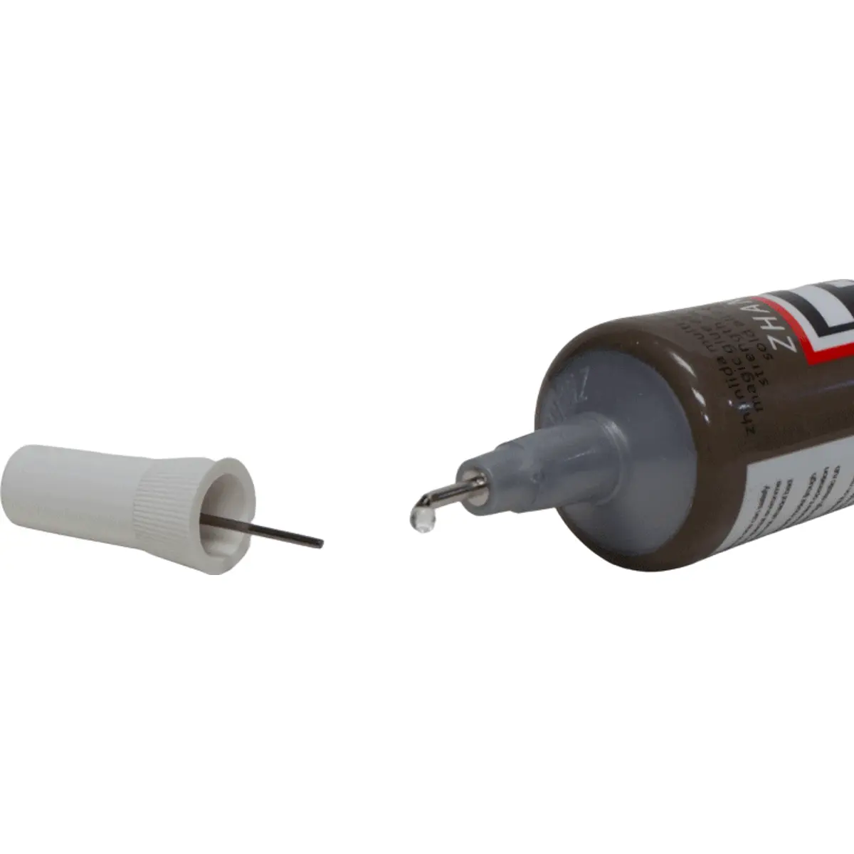 Adesivo transparente de alta performance, com média viscosidade, resistente a altas temperaturas, ideal para a reparação de ecrãs de smartphones, tablets e outros dispositivos eletrónicos. Oferece adesão versátil a metal, vidro, cerâmica, tecido, couro, nylon e plásticos, entre outros. Vem numa embalagem de 50 ml com bico desentupidor. A cura ocorre entre 24 e 48 horas, com secagem de 3 a 6 minutos. Possui teor de sólidos de 30-35% e dureza curada entre 70 e 85 B, funcionando numa faixa de temperatura de -35°C a +120°C.