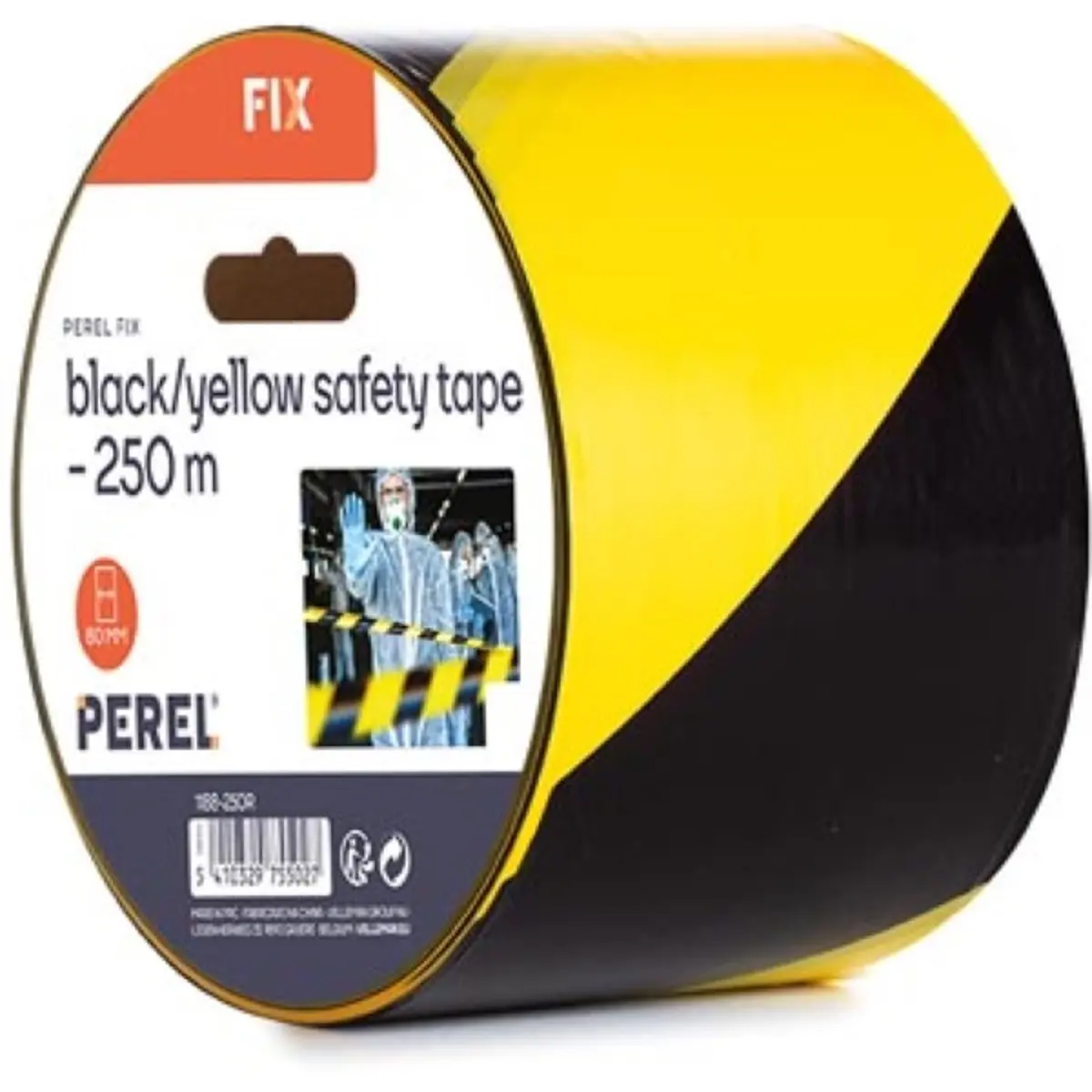 Perel 1188-250R - Fita de segurança preto/amarelo - 80mm x 250m