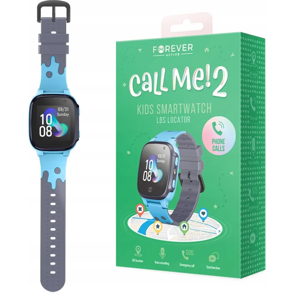 O Smartwatch Forever Call Me 2 KW-60 é um relógio inteligente para crianças, que oferece uma série de recursos para garantir a segurança e o conforto do seu filho ou filha. Este dispositivo possui várias opções que permitem o controlo e o contato com a criança, incluindo localização no mapa, botão SOS, possibilidade de conversa remota e escuta do ambiente.