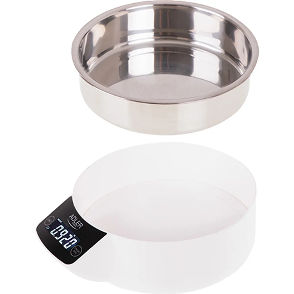 O recipiente estético, em aço inoxidável, é amovível e fácil de manter limpo. Para além disso, a balança tem a opção de calcular o volume de água e leite, o que é útil quando não encontra um copo de medição.