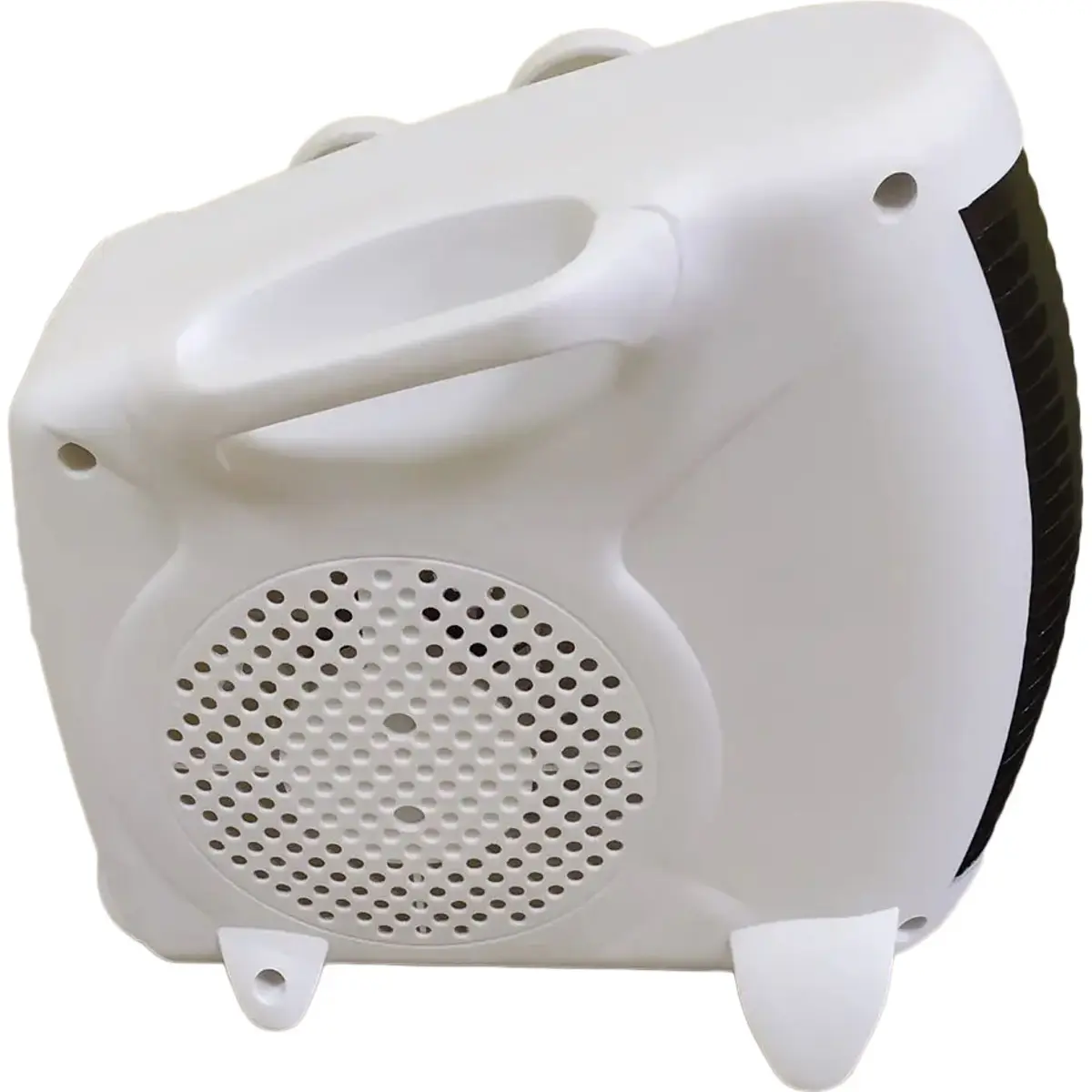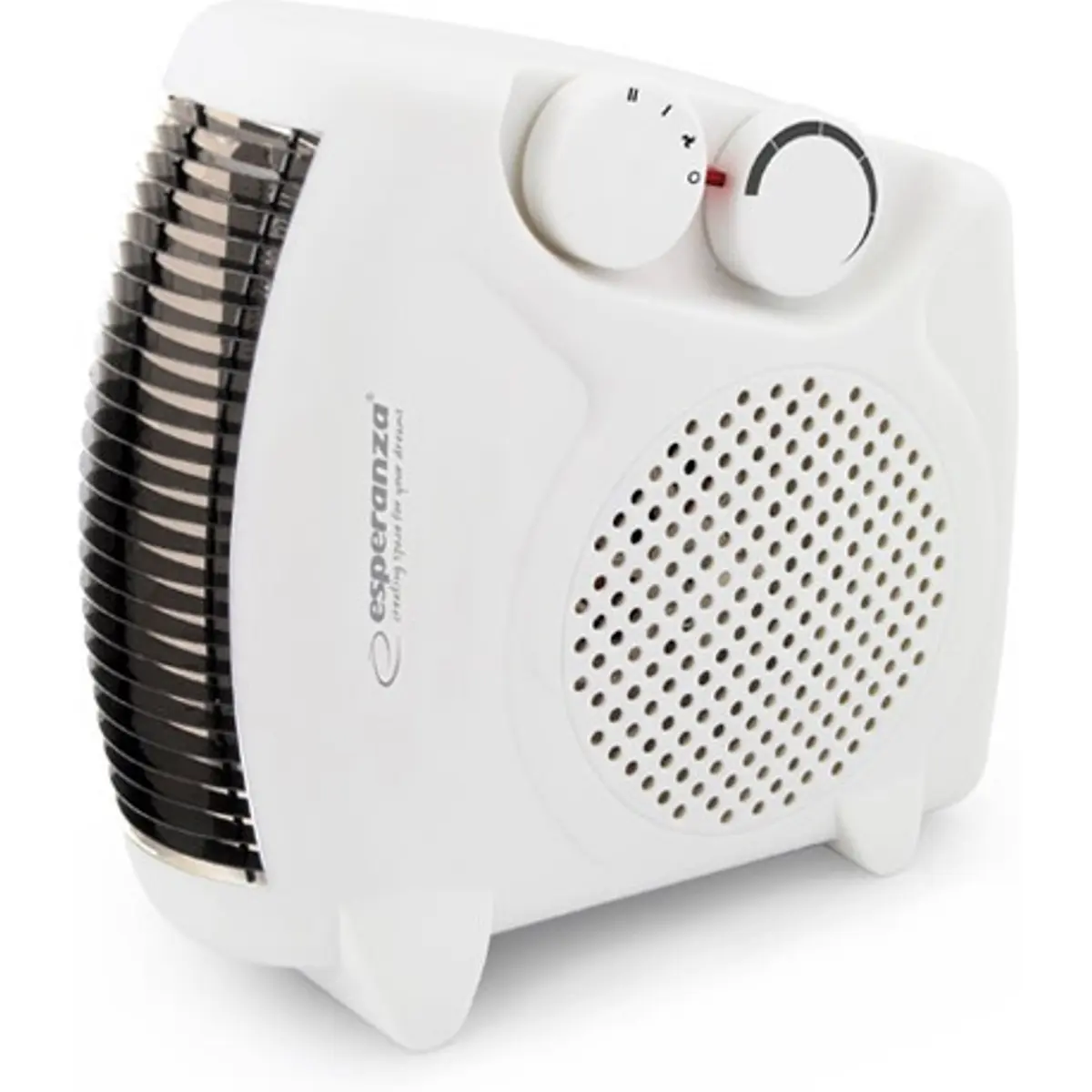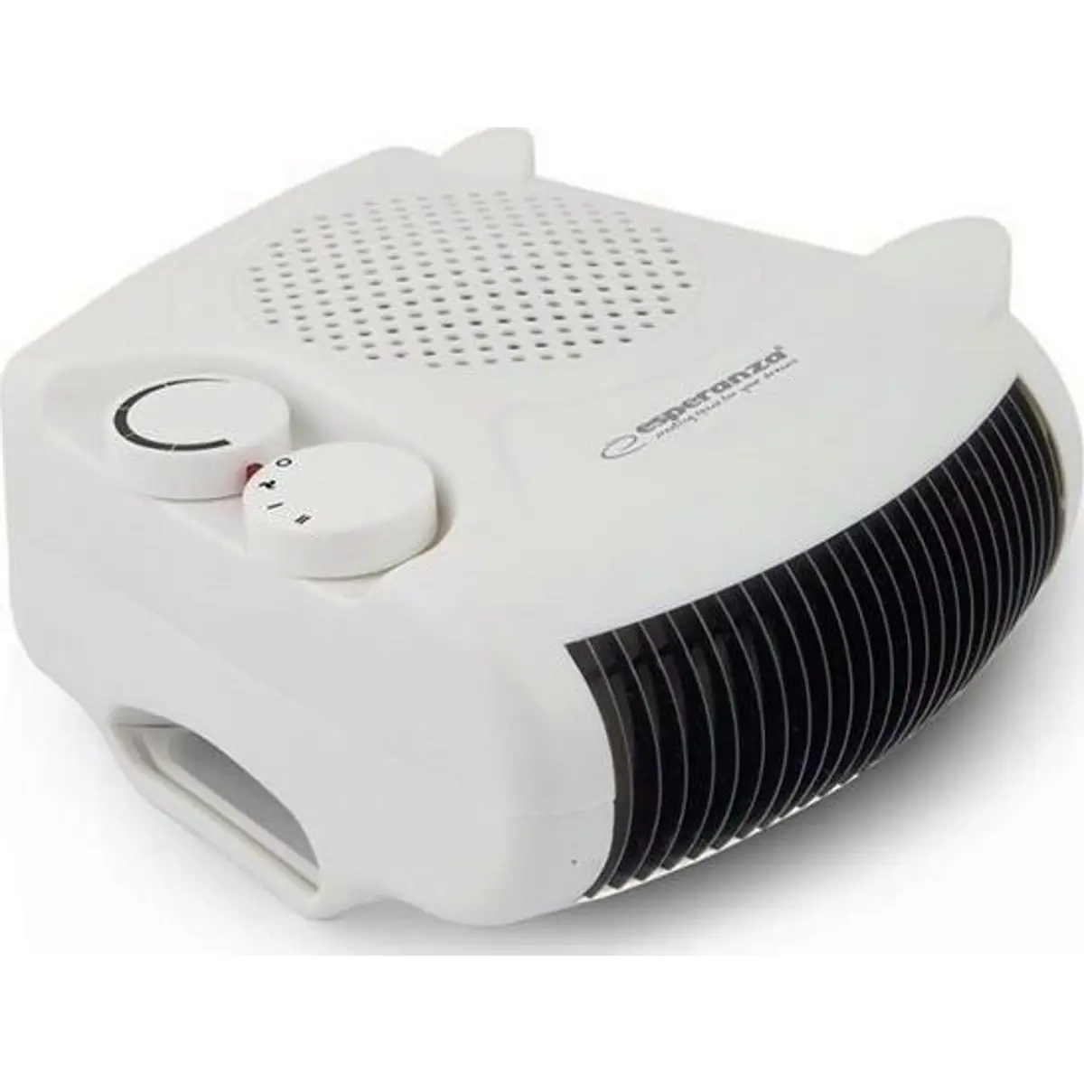 Aquecedor elétrico com ventilação (termoventilador) que pode ser posicionado verticalmente ou horizontalmente.