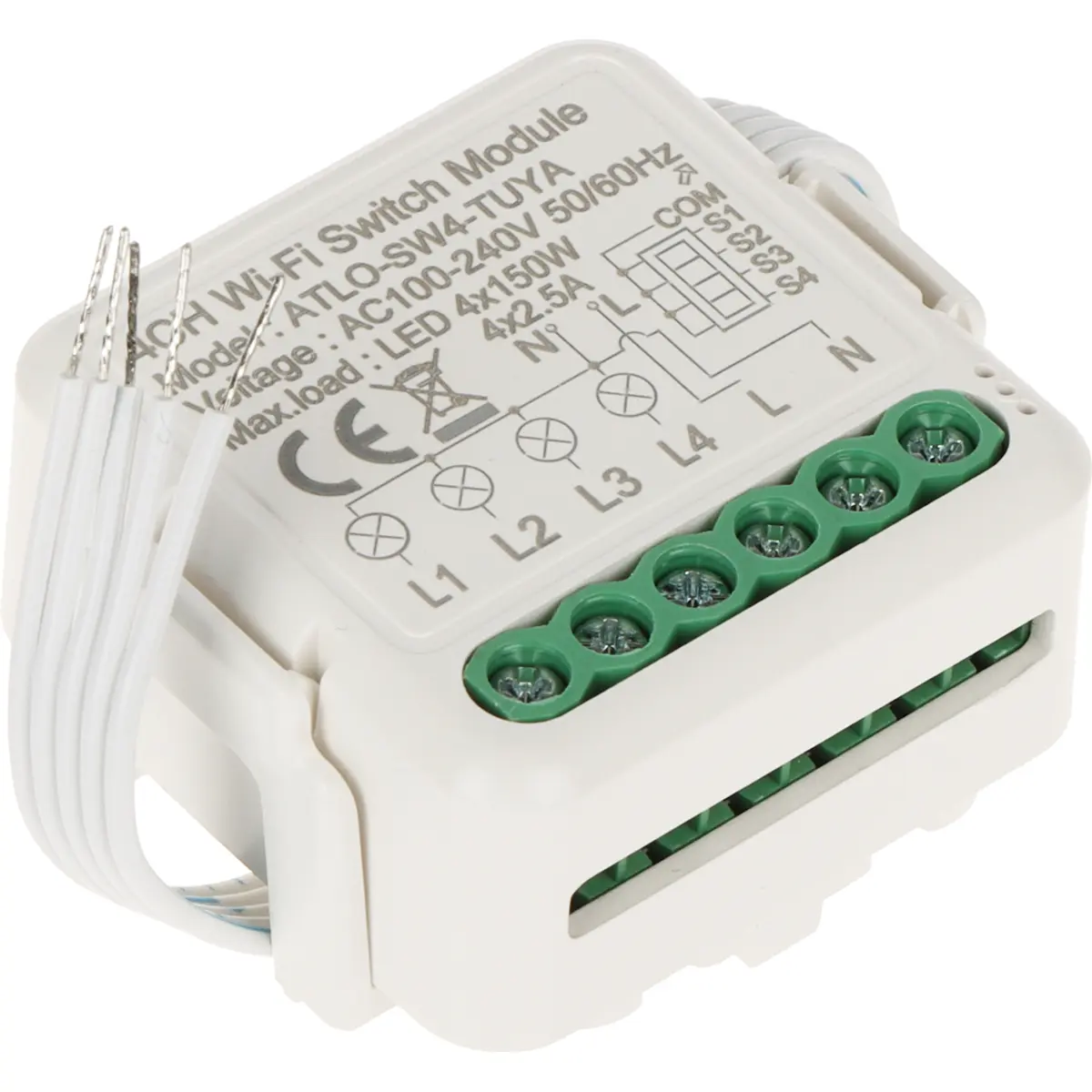 ATLO SW4-TUYA - Módulo interruptor quádruplo inteligente WiFi (compatível c/ Tuya)