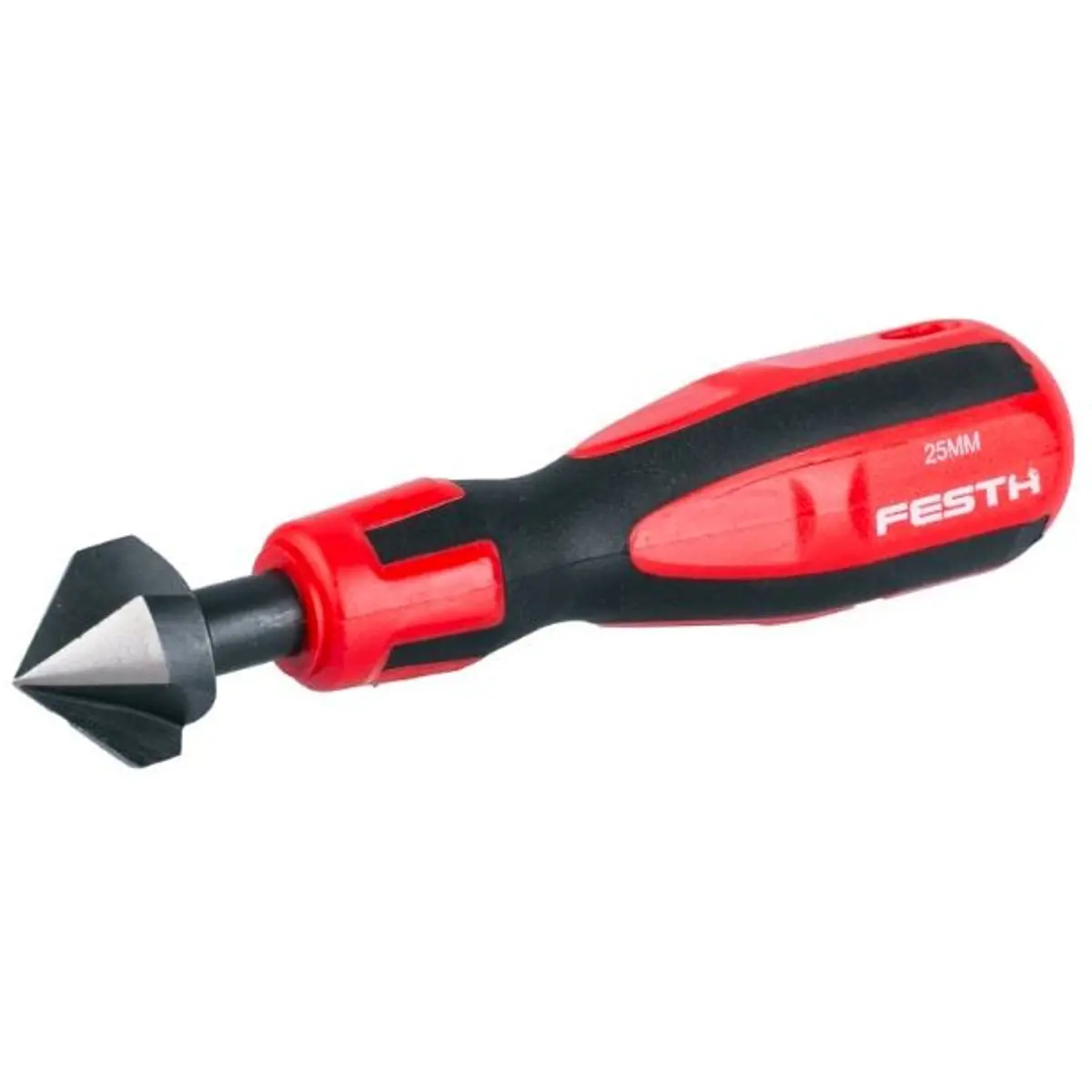 O rebarbador/escareador manual Ø25 mm é uma ferramenta resistente, fabricada em aço para ferramentas, indicada para a remoção de rebarbas e a chanfragem de arestas após perfuração em metal ou plástico. Possui diâmetro de 25 mm, ângulo de 90° e pesa 130 g, oferecendo acabamento preciso em peças de metal ou plástico. Ideal para trabalhos de detalhe e melhoria de qualidade de corte, com construção de qualidade superior.