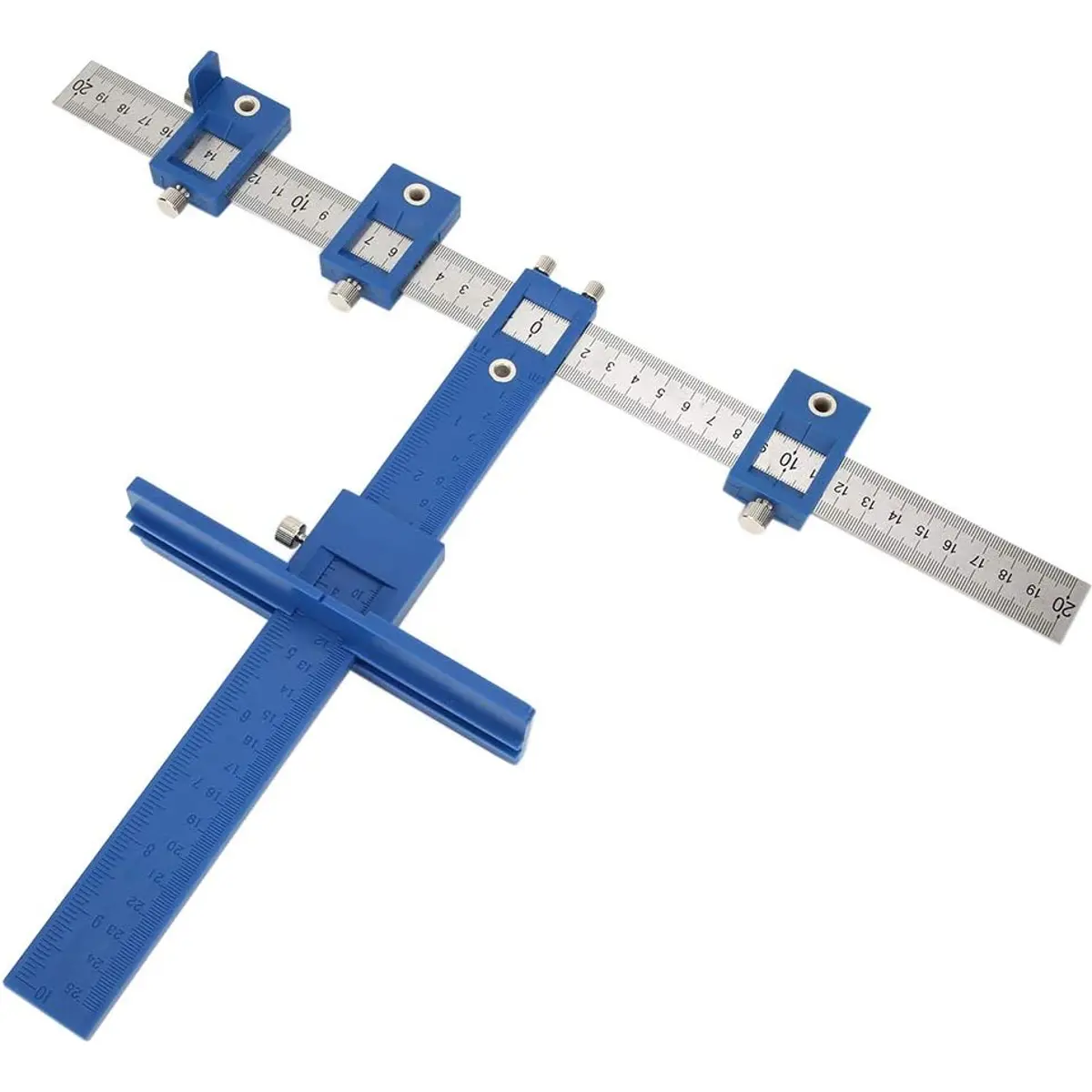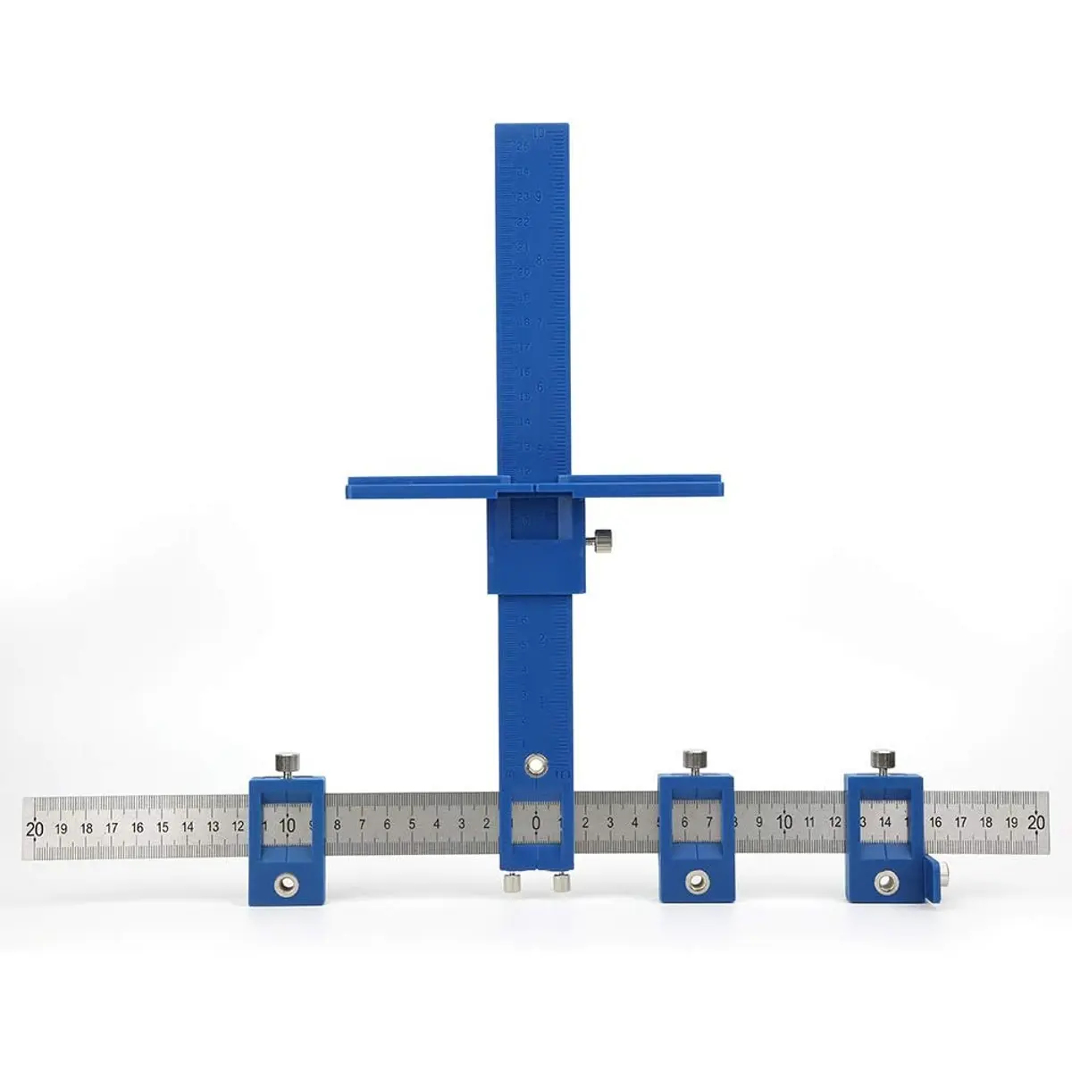 Com este prático modelo de gabarito de perfuração ajustável, torna-se fácil determinar a posição da porta do armário ou do puxador da gaveta. As partes móveis e ajustáveis do gabarito, complementadas por uma régua ajustável, facilitam a obtenção da precisão necessária. Em seguida, é simples transferir as medidas de um armário para outro. Sua principal vantagem reside na facilidade de uso e, sobretudo, na precisão ao realizar perfurações em diversos tipos de móveis. Este gabarito não apenas economiza tempo durante medições repetidas, mas também simplifica significativamente o processo de produção de móveis.