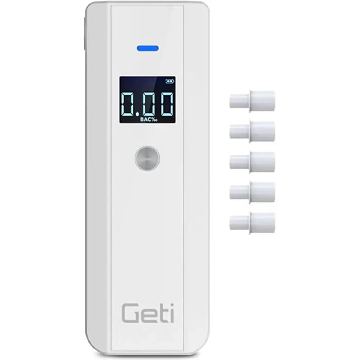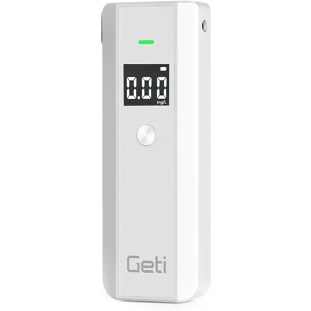 Este moderno testador digital de álcool, o GETI GAT02, foi desenvolvido para uso pessoal e está equipado com o mais avançado tipo de sensor semicondutor. O dispositivo é projetado para medir os níveis de álcool no sangue e, embora não possua um sensor eletroquímico, oferece resultados muito precisos. A faixa de medição do testador varia de 0,00 a 2,00 g/L, com uma precisão de ±0,8 g/L. Utilizar o testador de álcool é simples: basta ligá-lo e começar a soprar no bocal após a contagem regressiva. O nível de álcool medido é então exibido em um amplo visor LCD retroiluminado.