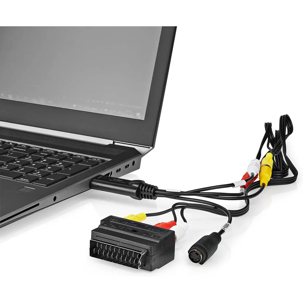 Placa de captura de vídeo USB 2.0 compatível com AV e S-Video, que converte conteúdos analógicos em formato digital no PC. Compatível com dispositivos AV, Scart e S-Video, incluindo gravadores e câmaras. Inclui dongle USB, adaptador Scart, cabo USB 2.0 para áudio/vídeo e guia de instalação rápida com software necessário. Compatível com Windows 7 a Windows 11.