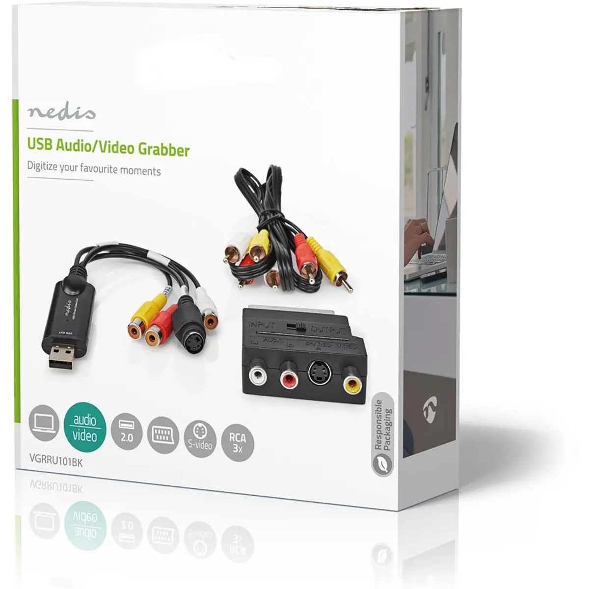 Nedis VGRRU101BK - Placa de captura de vídeo USB2.0 compatível com AV e S-Video