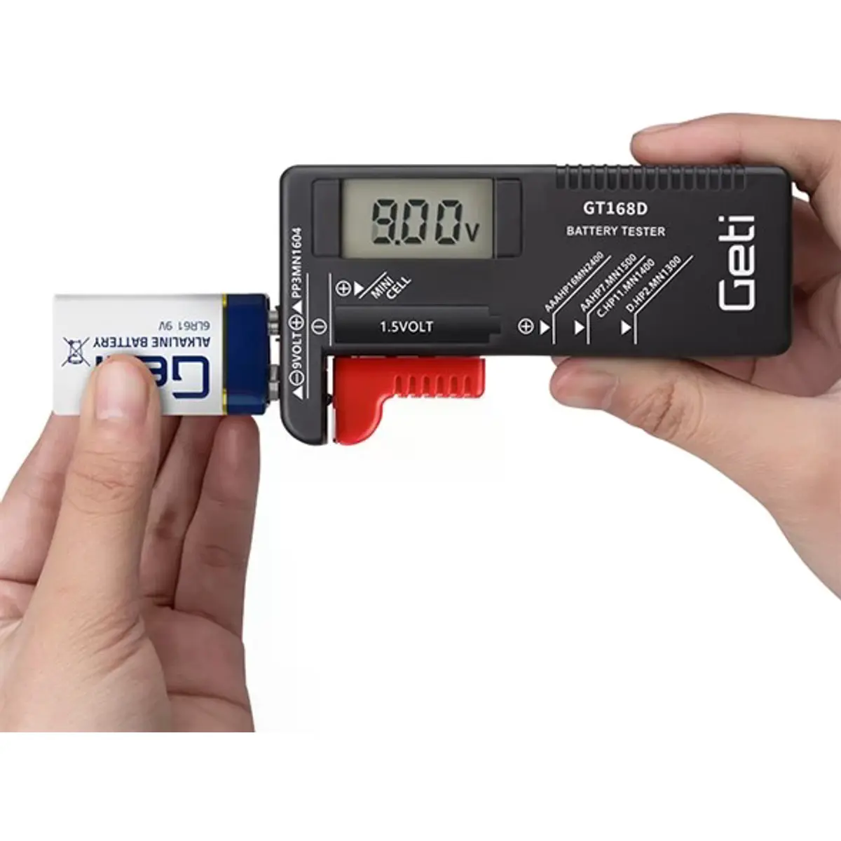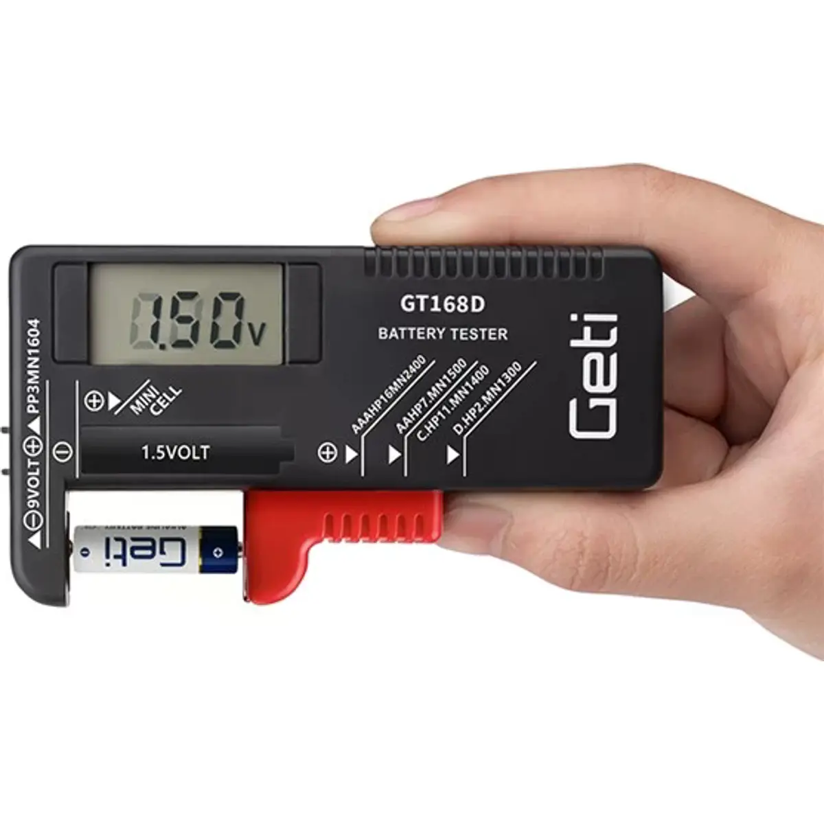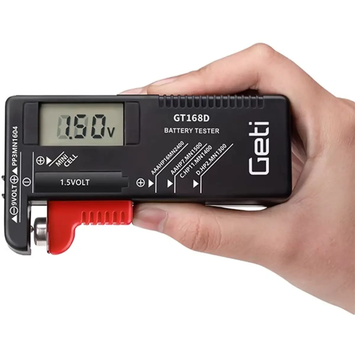 - Tipos de tamanhos de bateria medidos: AAA / AA / C / D / 6F22 (9v) e pilhas de botão de 1,5V
