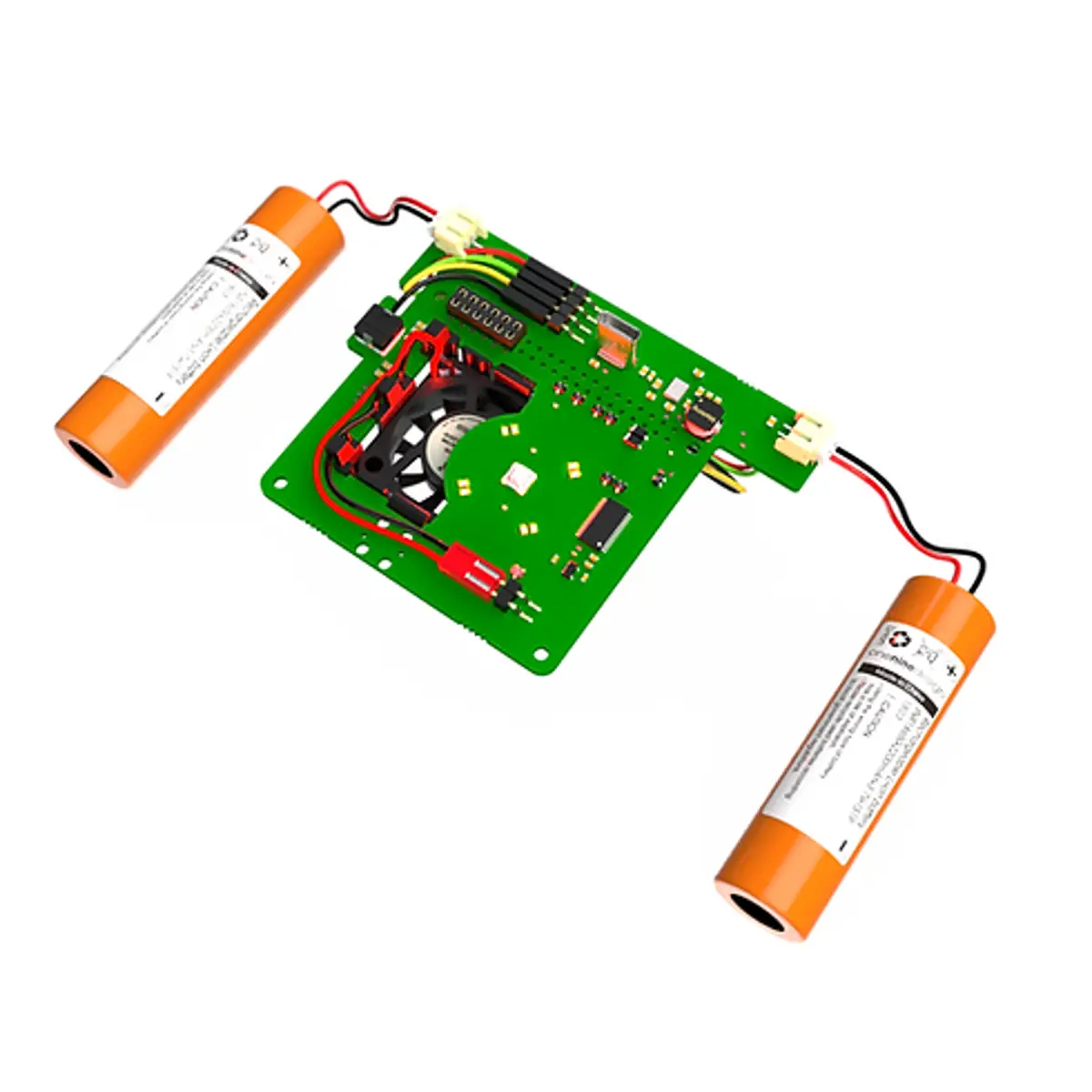 Inclui duas baterias recarregáveis (modelo 18650) de 2200mAh cada, permitindo até 3 horas de utilização do ecrã. Além disso, esta caixa permite o acesso aos principais conectores do Raspberry Pi 4 e integra uma ventoinha para melhorar o fluxo de ar e evitar o sobreaquecimento do Raspberry Pi.